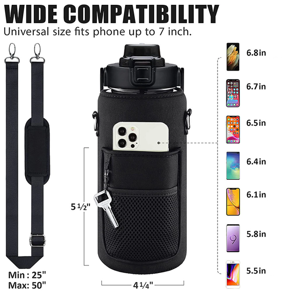 2 Liter Water Bottle with Strap Thermos Pouch Water Cup Cover Storage Bag Carrier Sleeve Bag