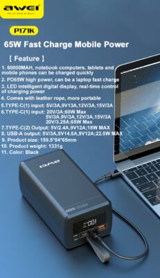 Type-C output: 5V/3.0A 9V/2.2A 12V/1.67A 20W (mAh)