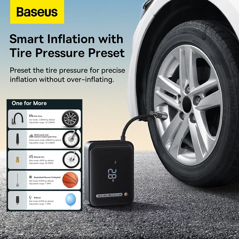 Baseus Mini Car Air Compressor 12V 150PSI Car Tire Inflator Smart Digital Inflatable Pump