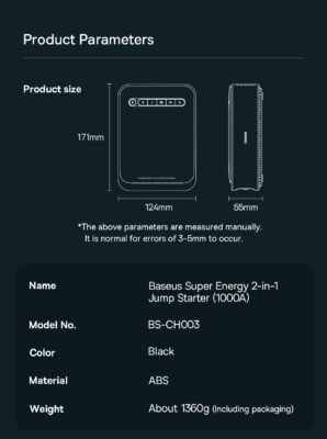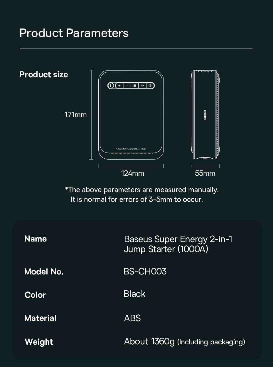 BASEUS 2 in 1 1000A Car Jump Starter Power Bank and Portable Air Compressor Inflator Pump