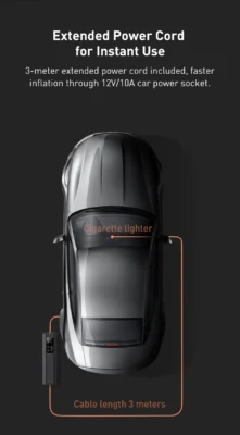 The high-RPM motor pumps up to thirty liters of air per minute, so this pump can reinflate all four tires in under half an hour. Upon that, the intuitive controls and integrated display make using the Baseus Super Mini a breeze.