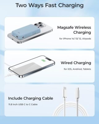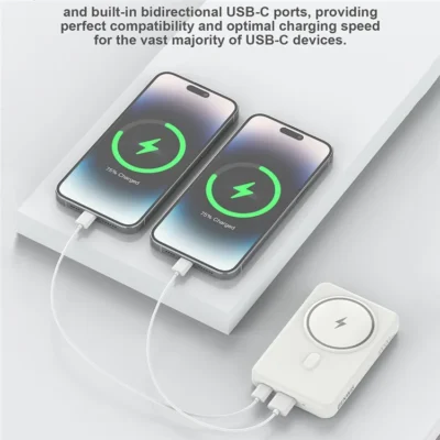- 15W wireless magnetic fast charger +PD 20W wired power bank, specially designed for iPhone 12/13/14/15 series