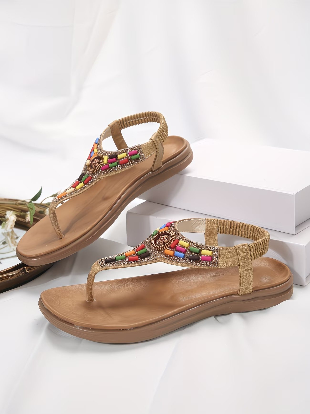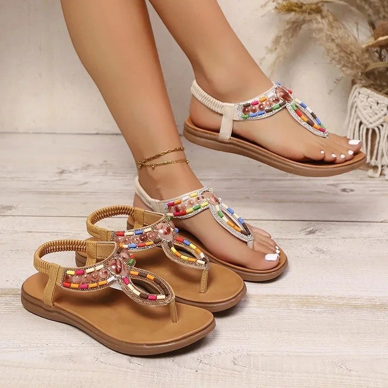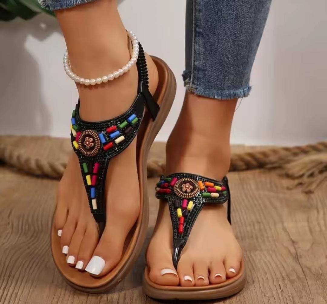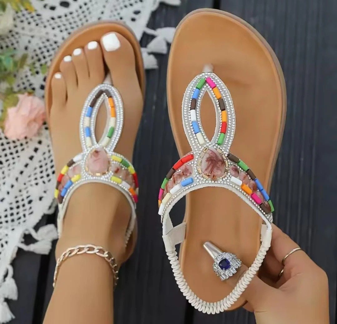 Colorful Beaded Clip Toe Bohemian Comfortable Summer Sandals