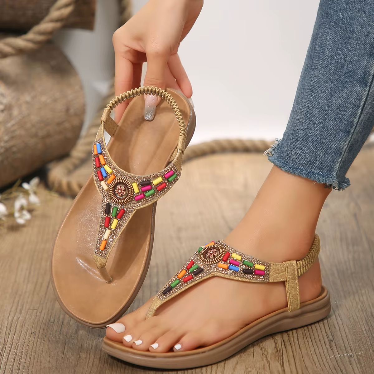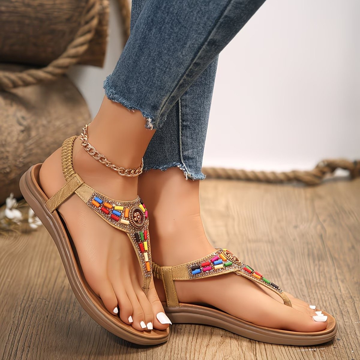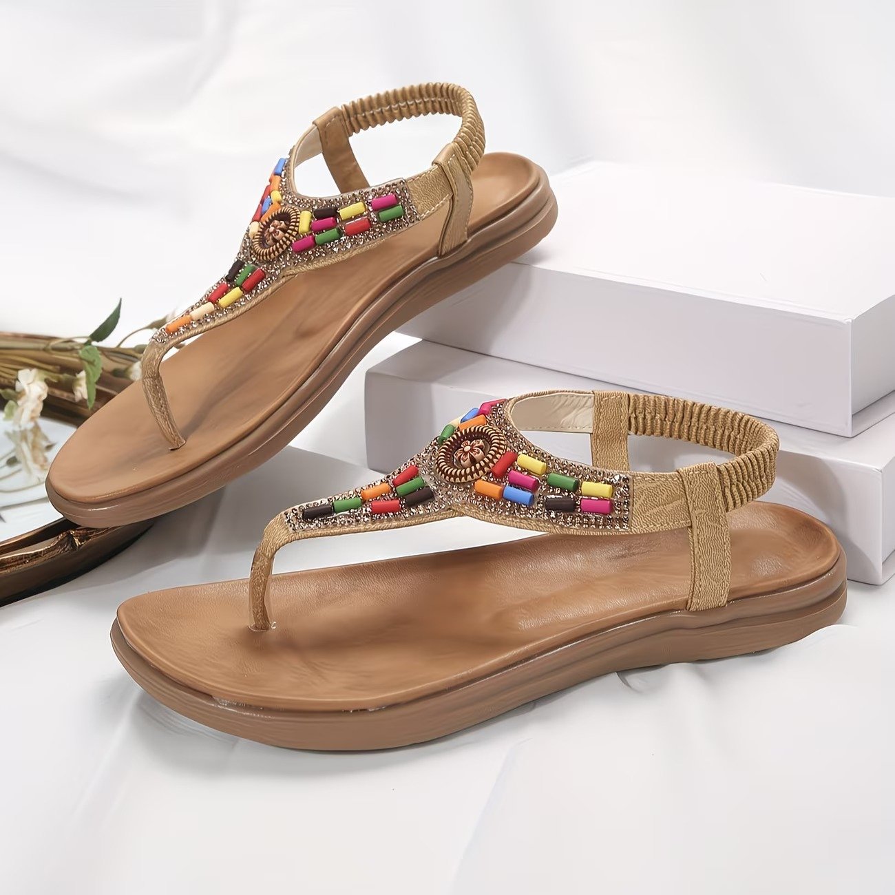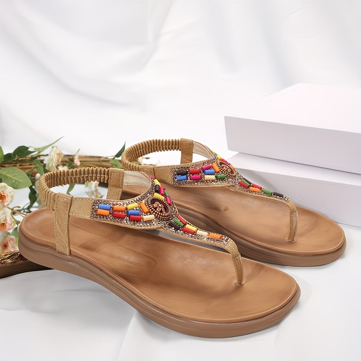 Colorful Beaded Clip Toe Bohemian Comfortable Summer Sandals