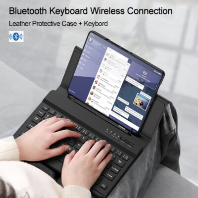 - Wireless Connection Bluetooth Keyboard Leather Protective Cover:keyboard with Bluetooth wireless connects, new office experience, the mute button doubles the efficiency of smooth typing