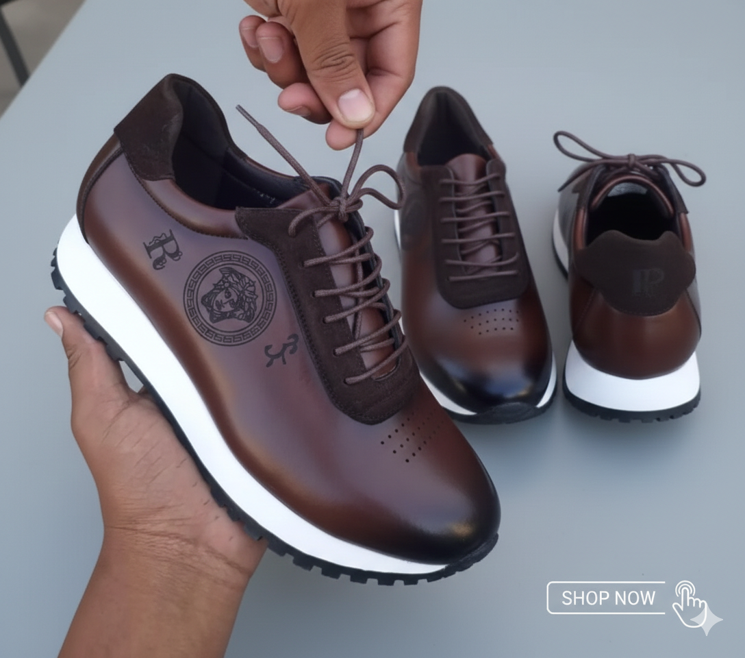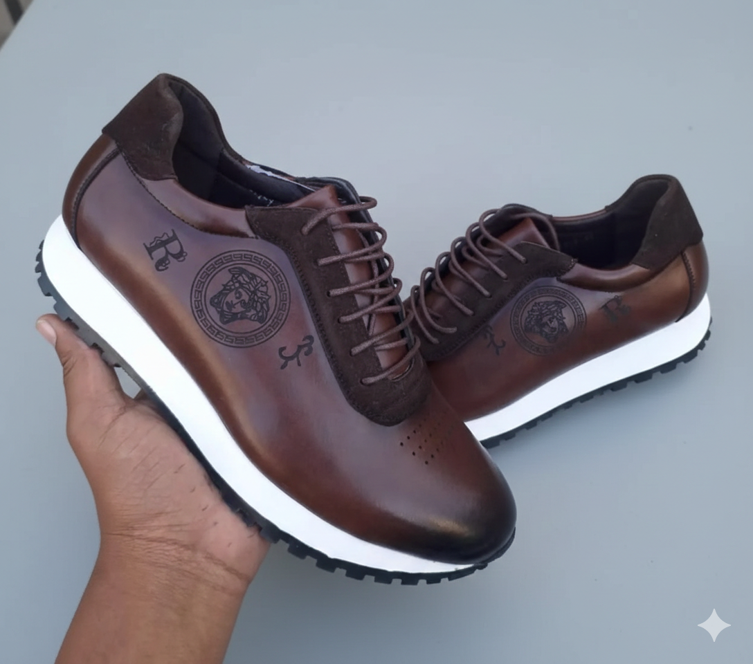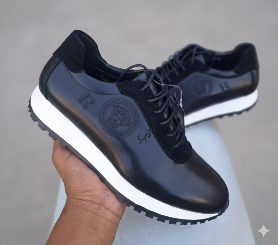Step into luxury with these masterfully crafted leather-style sneakers. Designed for the modern man, they perfectly blend high-fashion aesthetics with everyday comfort.