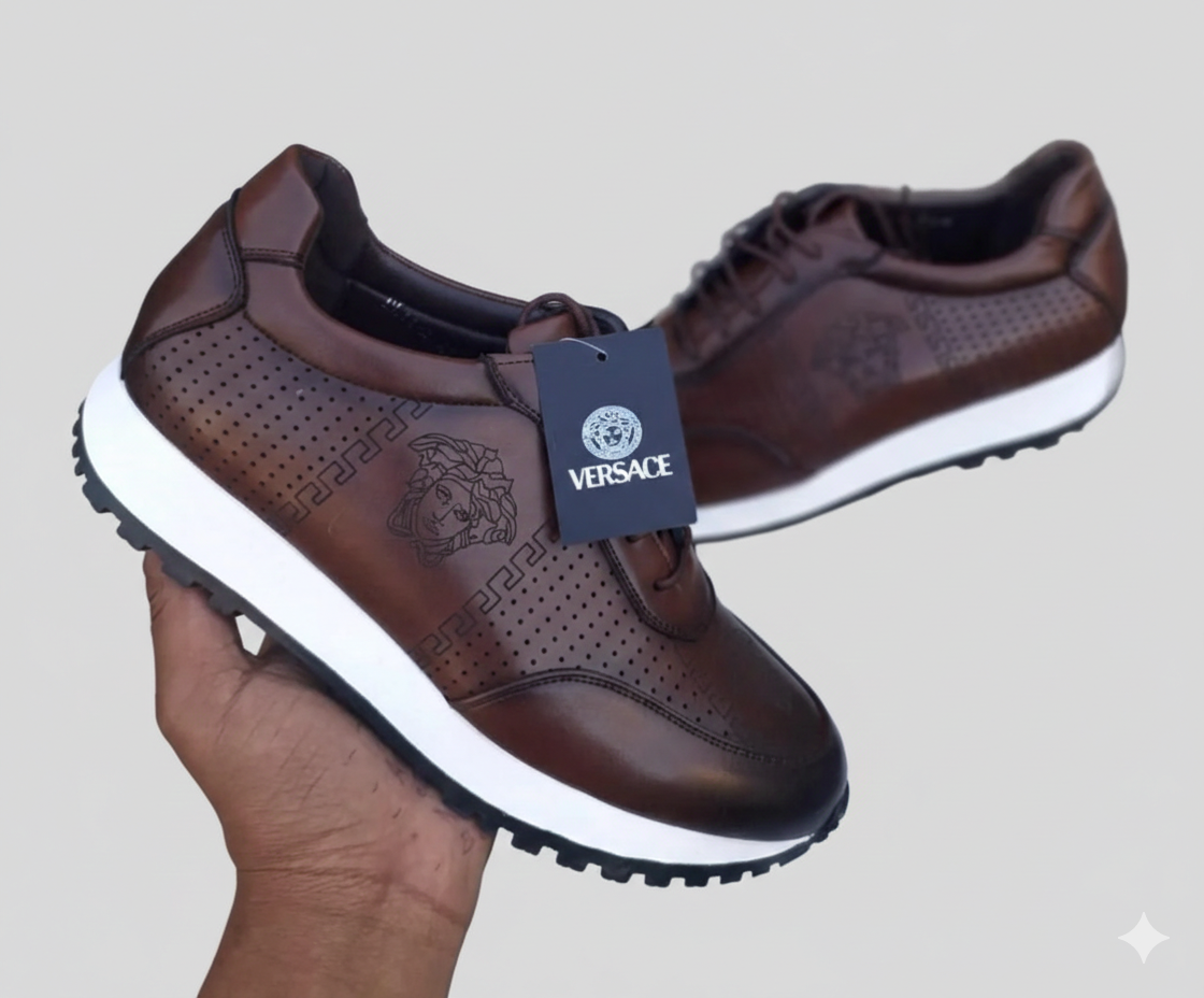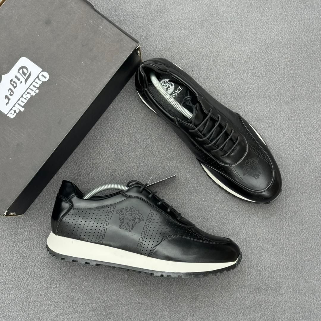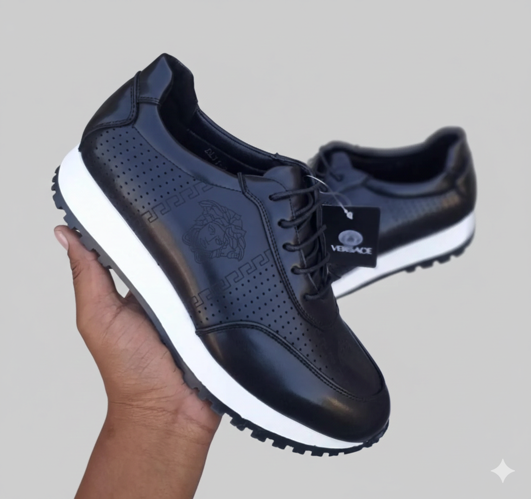 Step into luxury with these masterfully crafted leather-style sneakers. Designed for the modern man, they perfectly blend high-fashion aesthetics with everyday comfort.