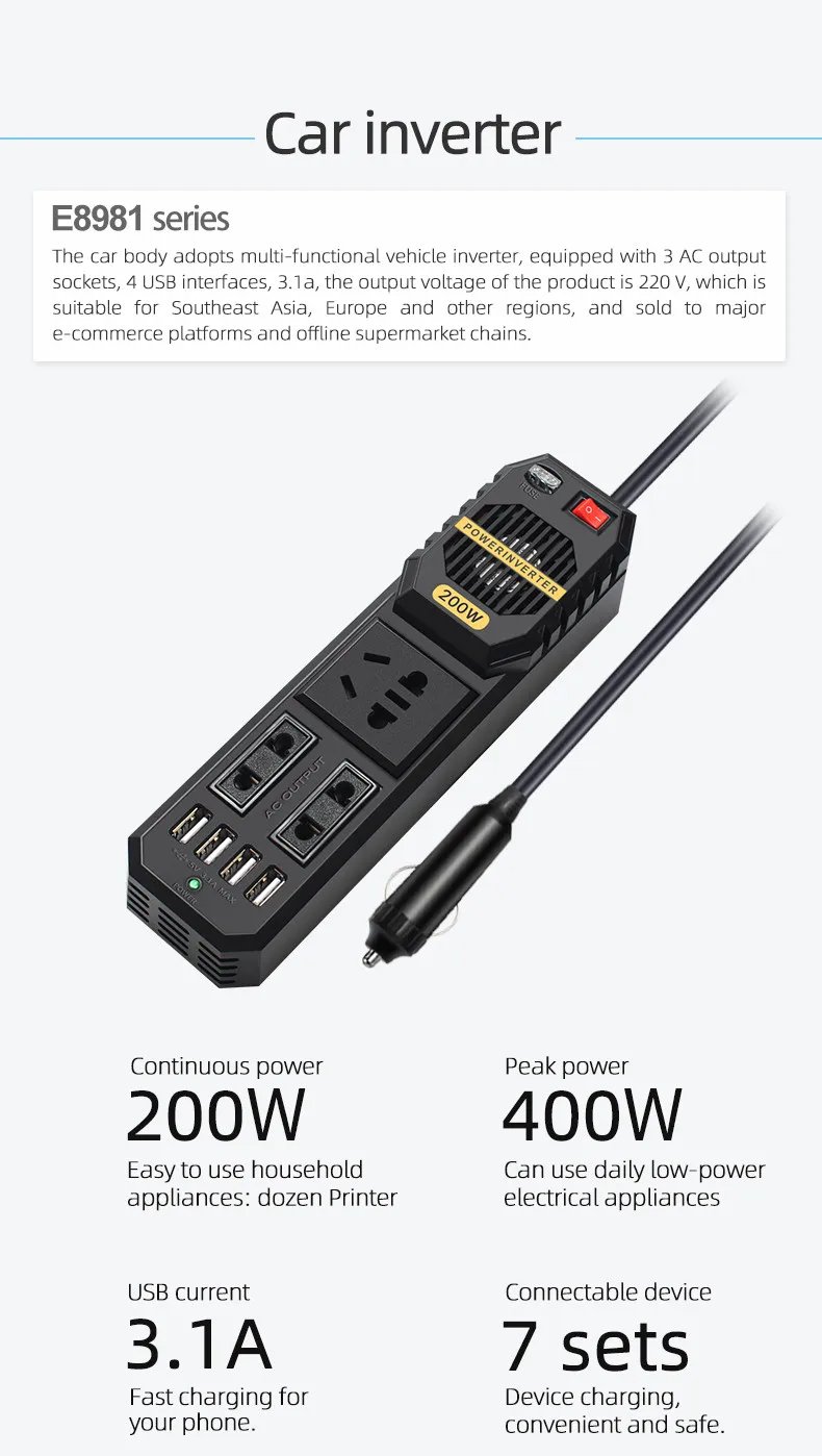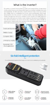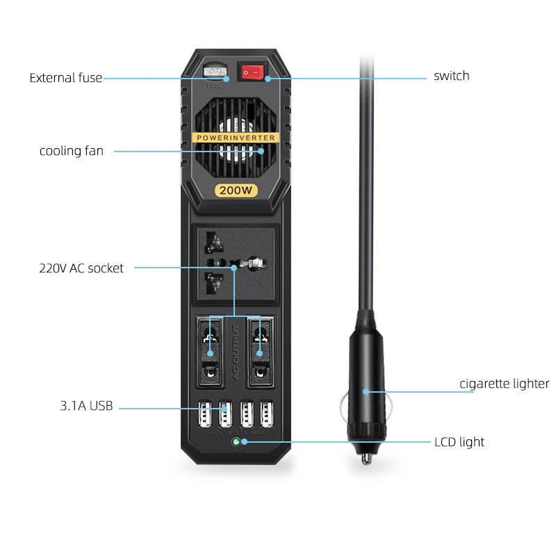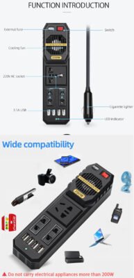 - With AC 220V outlet and USB port, apply in household applicance and many other electronics, such as laptops, cell phones, amplifier, freezer, etc