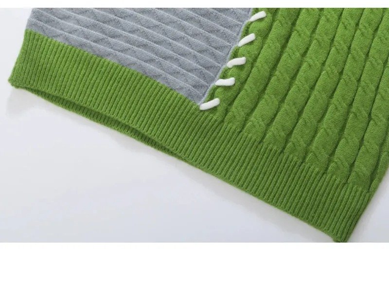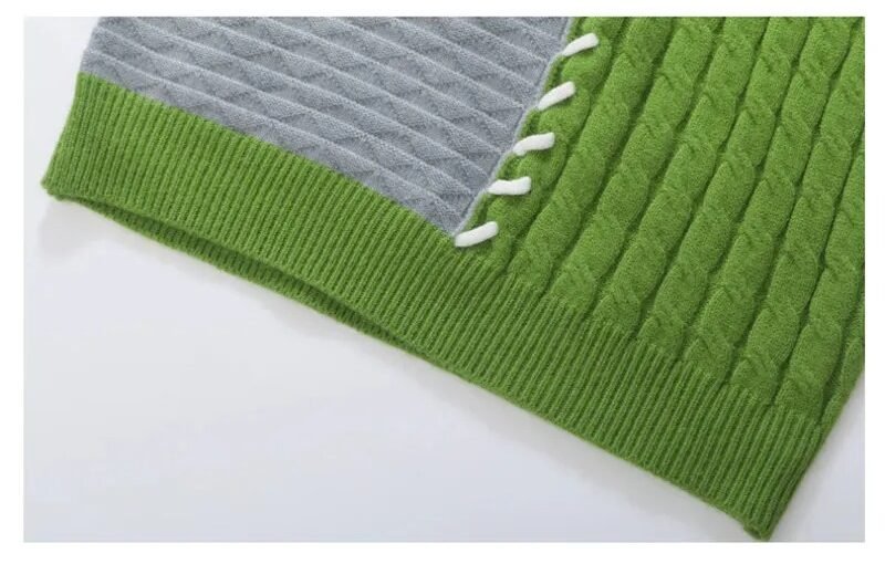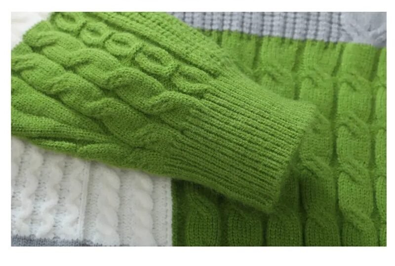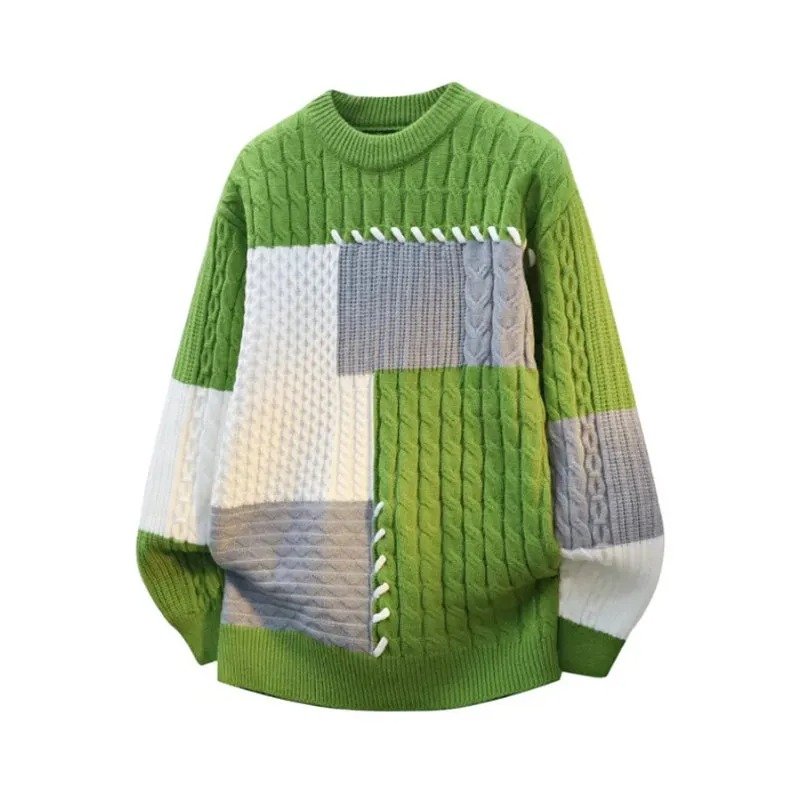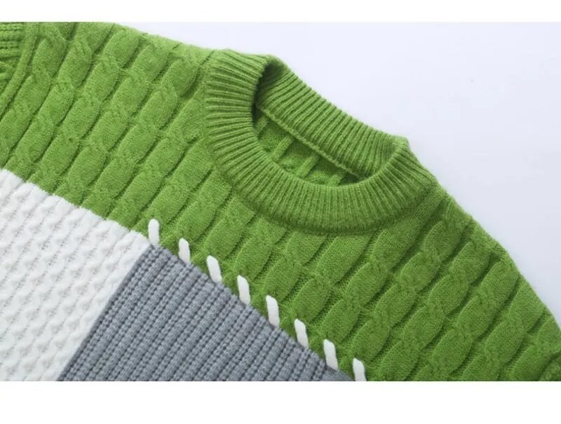 High Quality Patchwork Knit Thick Round Neck Sweater