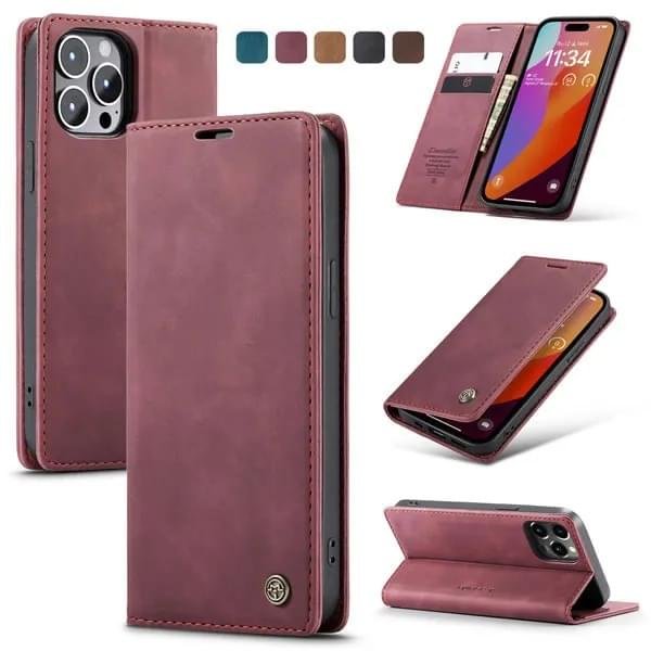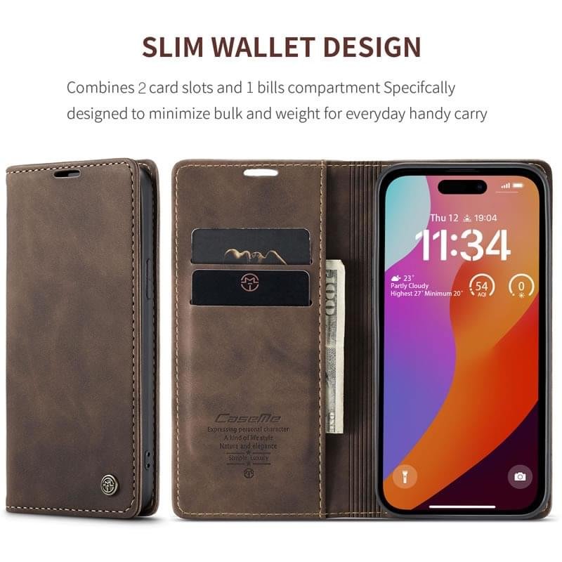 iPhone 14/15 Series CaseMe Soft PU Leather Flip Wallet Case with 2 Credit Card Slots and Magnetic Closure
