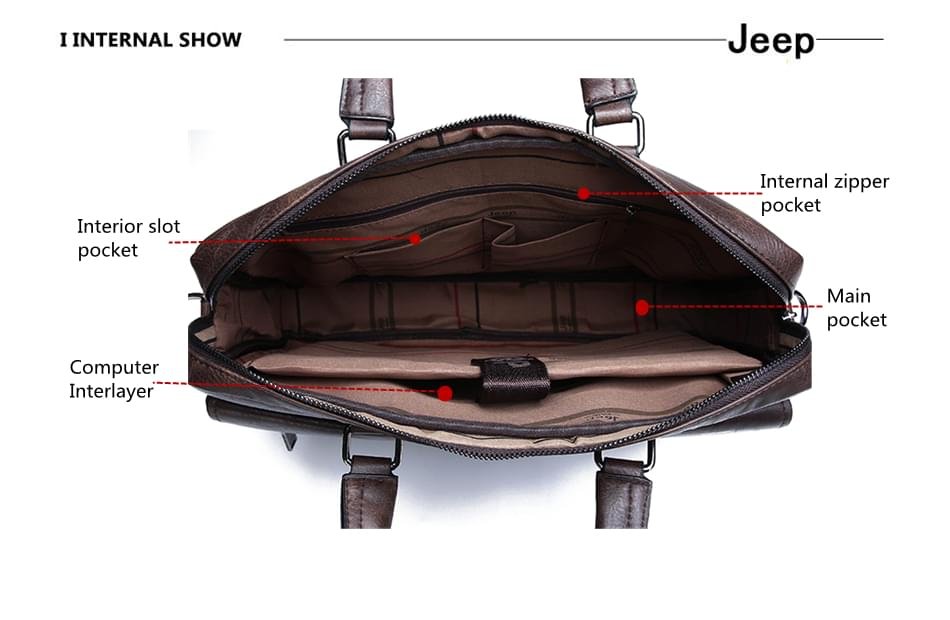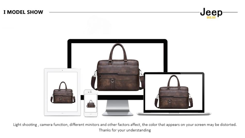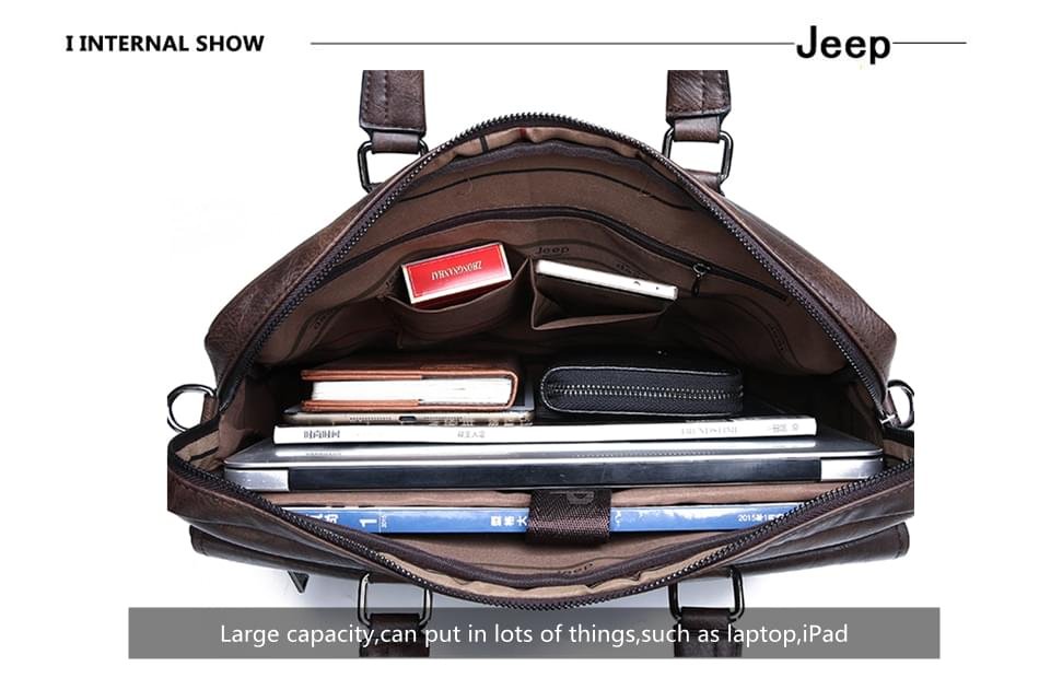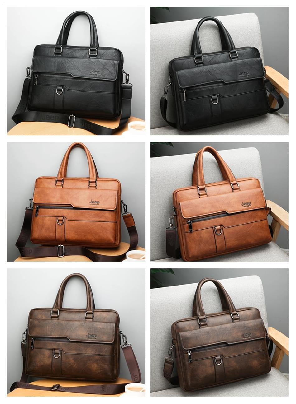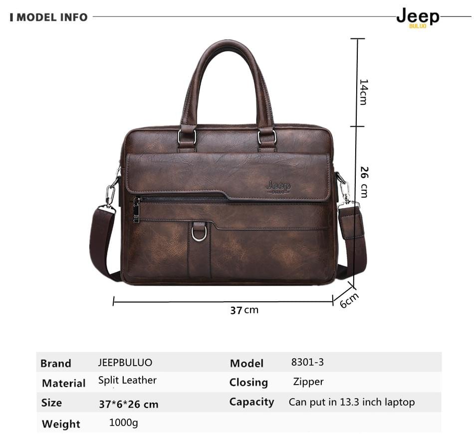 JEEP BULUO Brand Business Briefcase Split Leather High Quality Laptop Bag