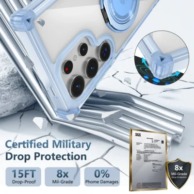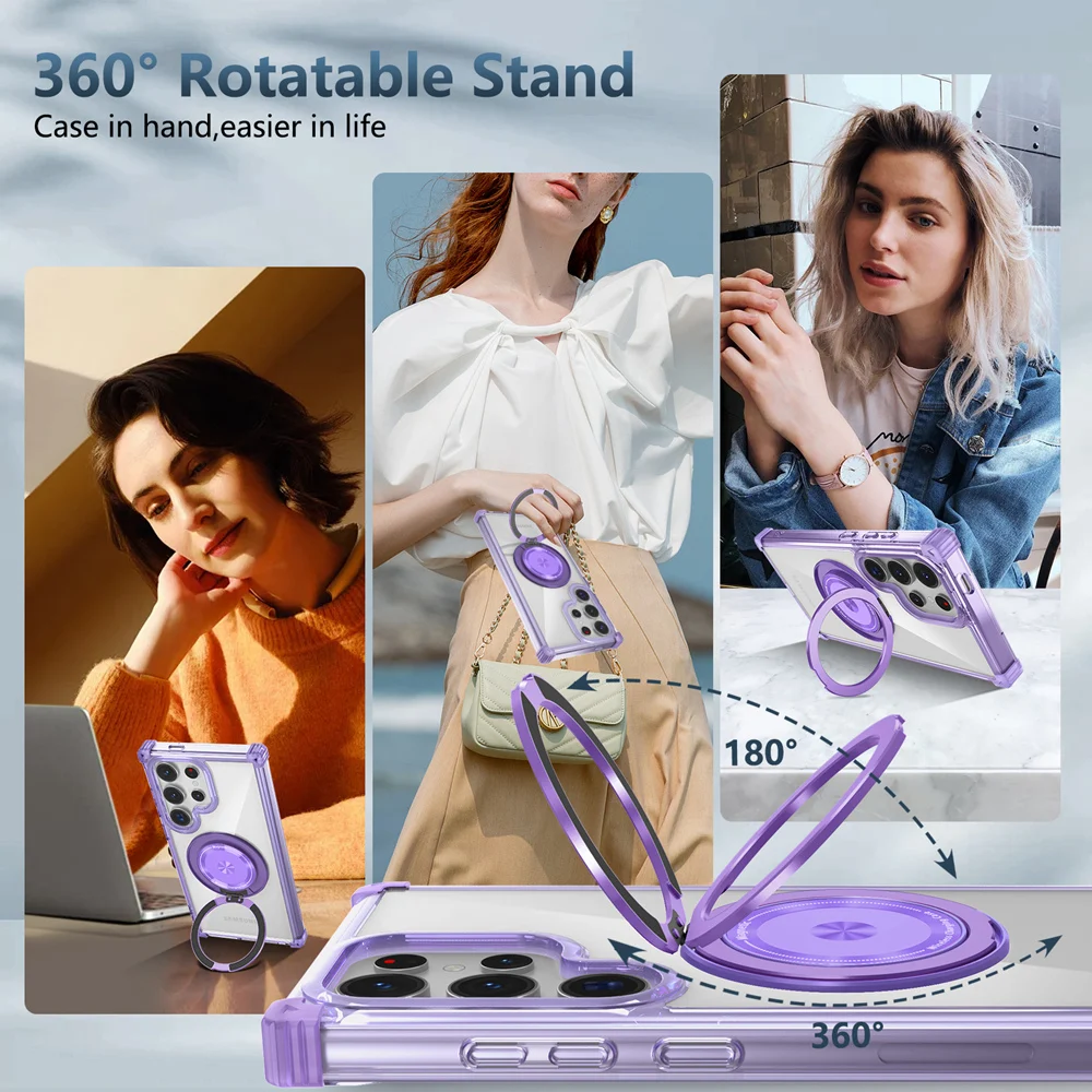 KEYSION Transparent Magnetic Ring Case Cover For Samaung Galaxy S23 Ultra