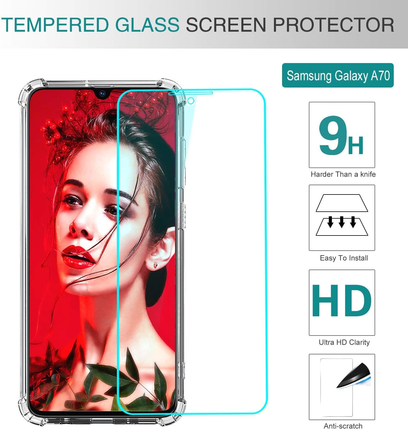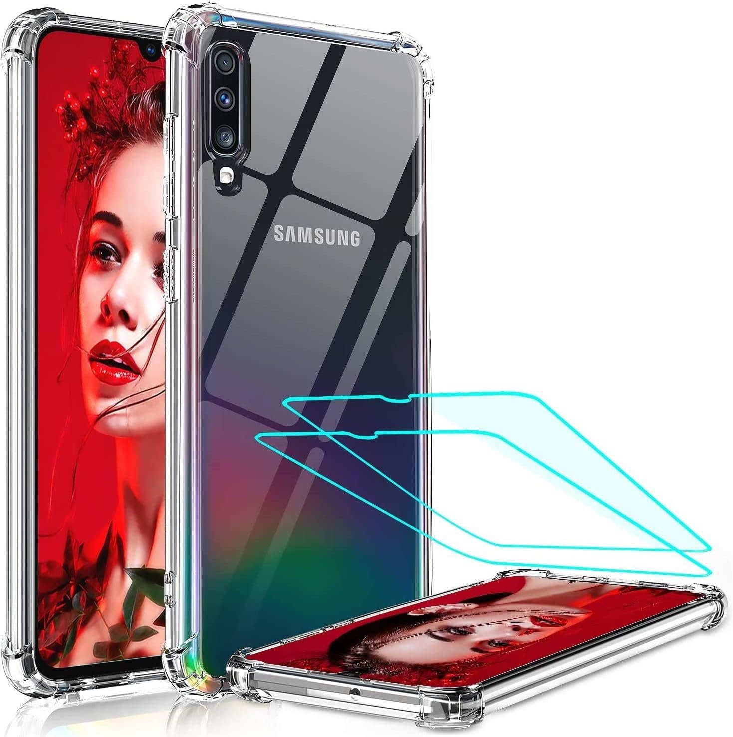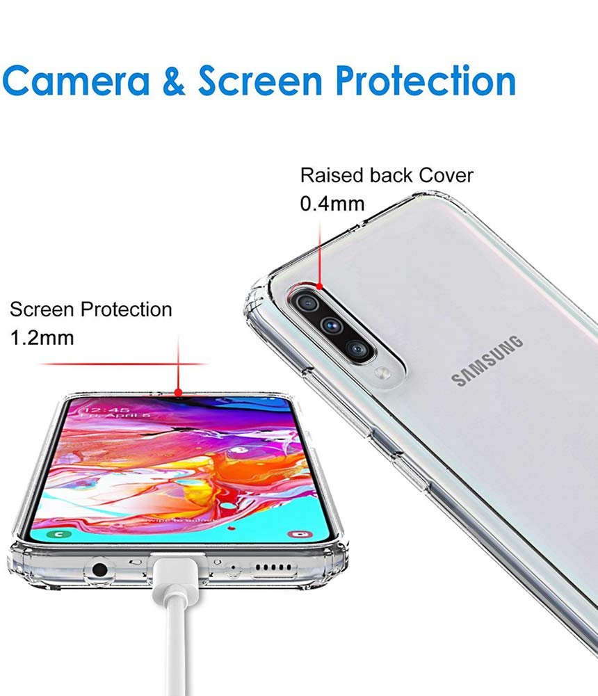 Luxury Premium Anti-Burst Transparent Case Cover and 3D Glass Protector For Samsung Galaxy A70