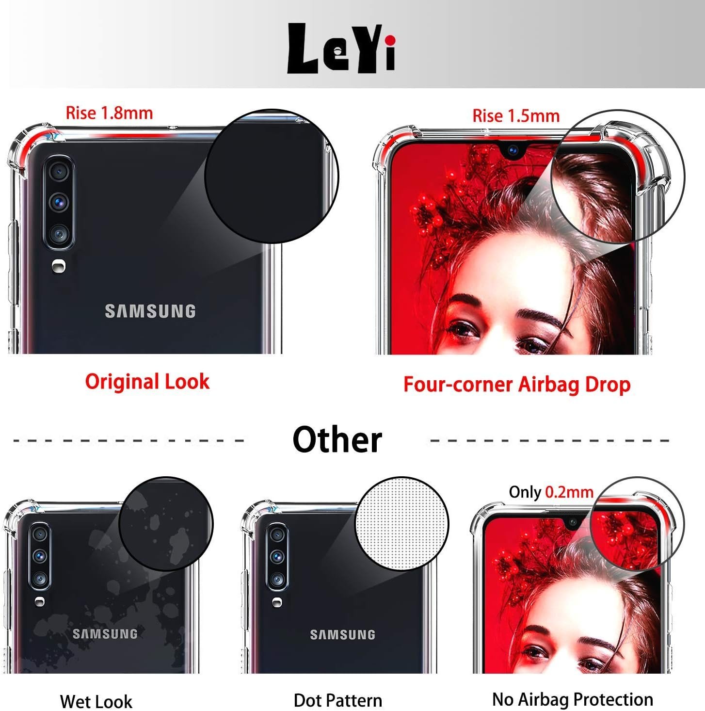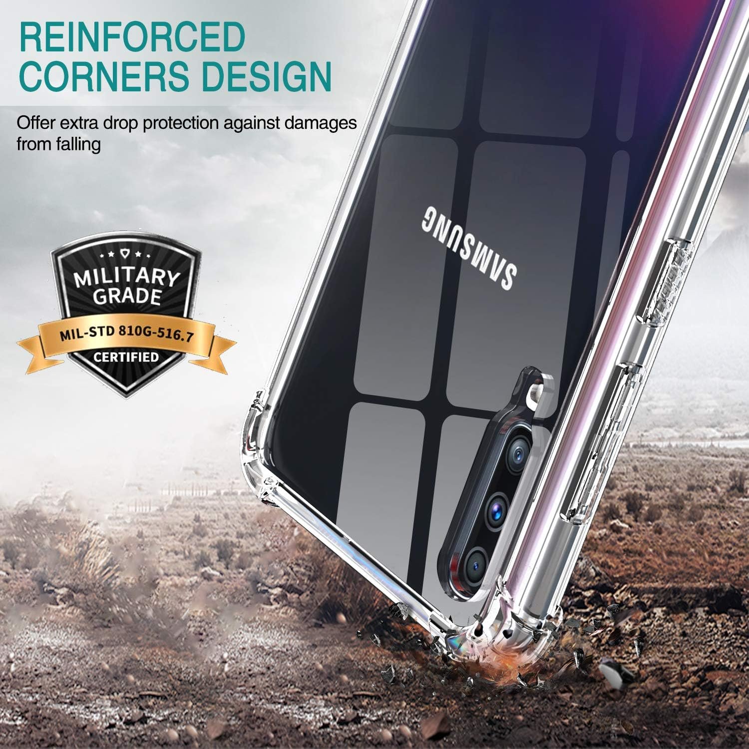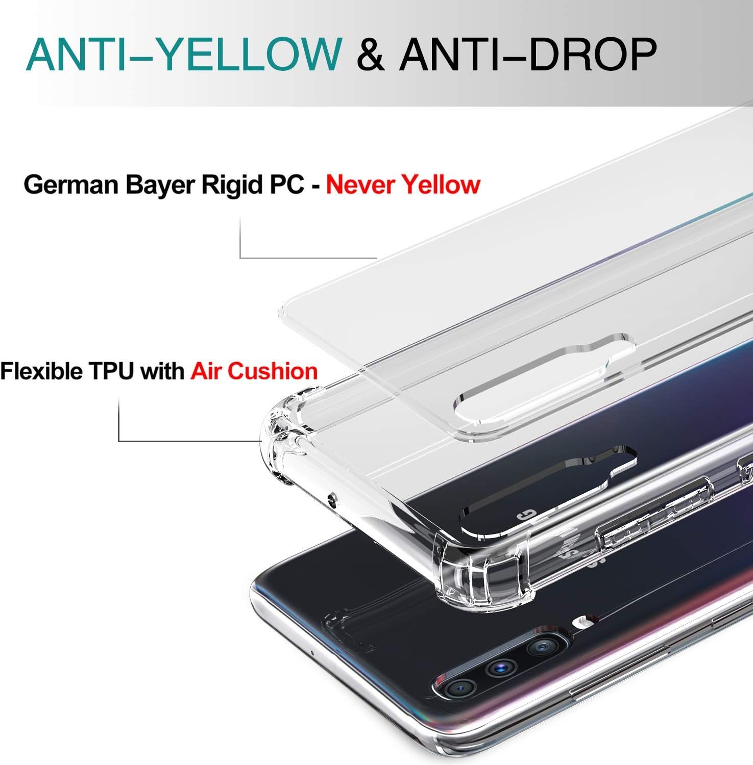 Luxury Premium Anti-Burst Transparent Case Cover and 3D Glass Protector For Samsung Galaxy A70
