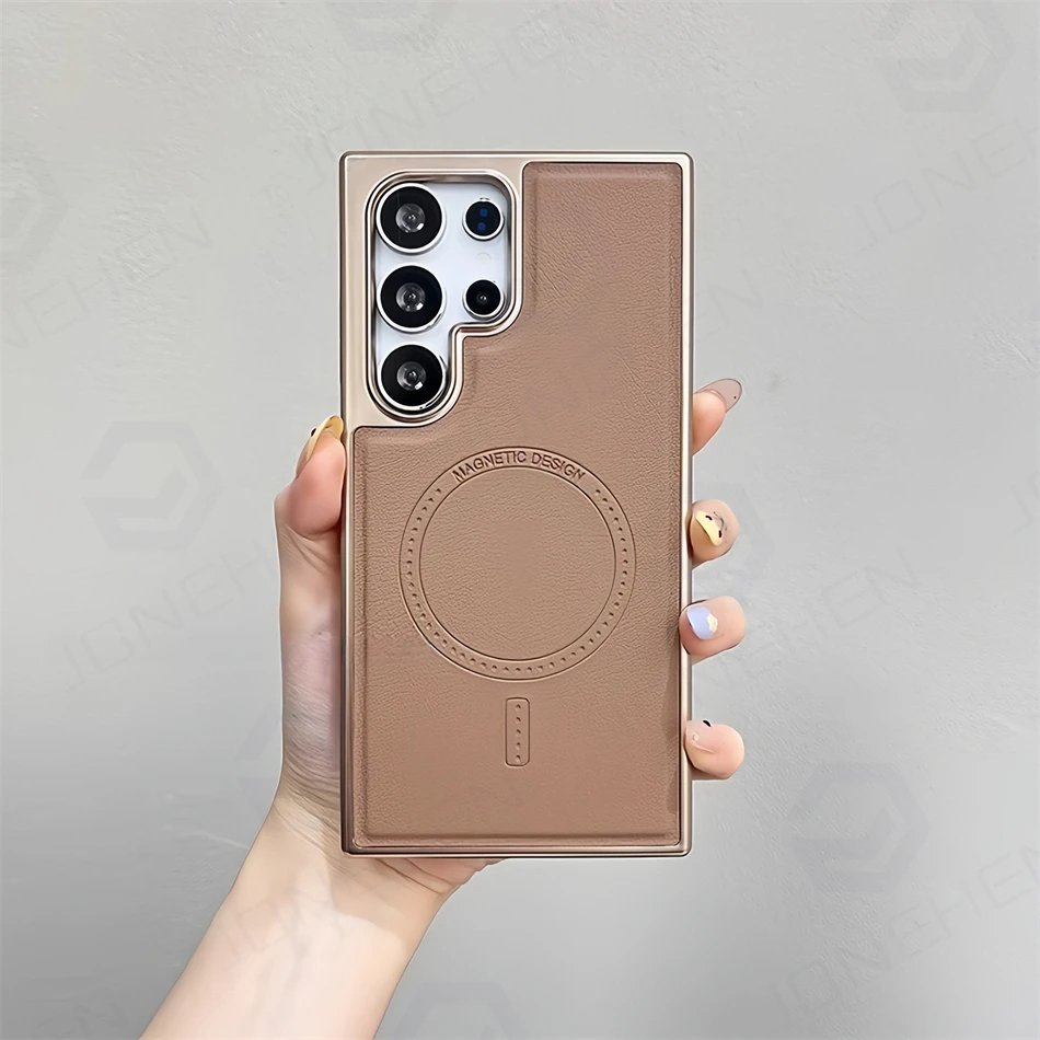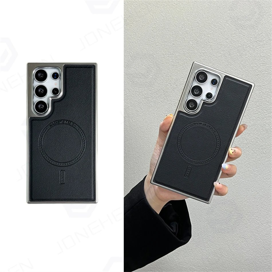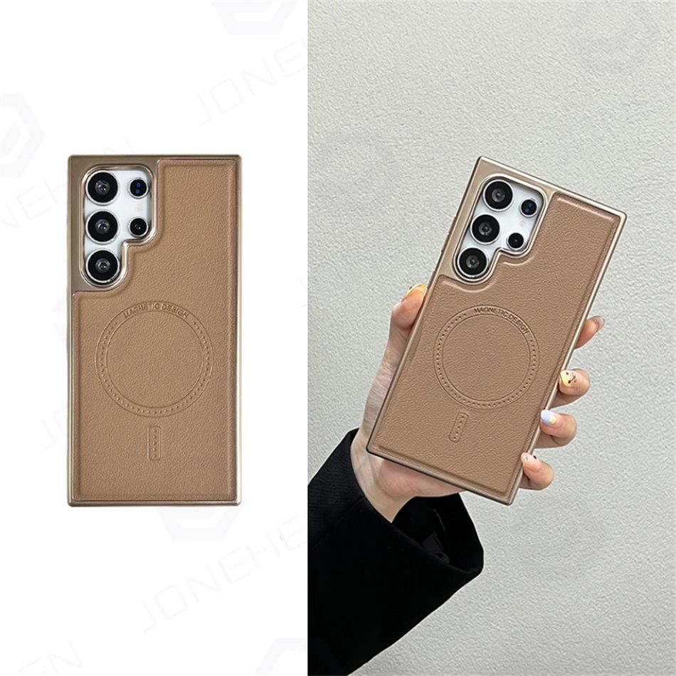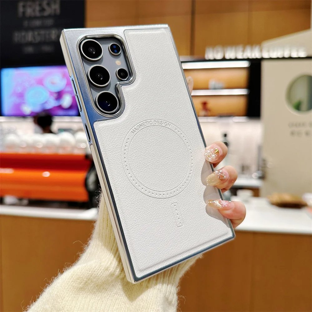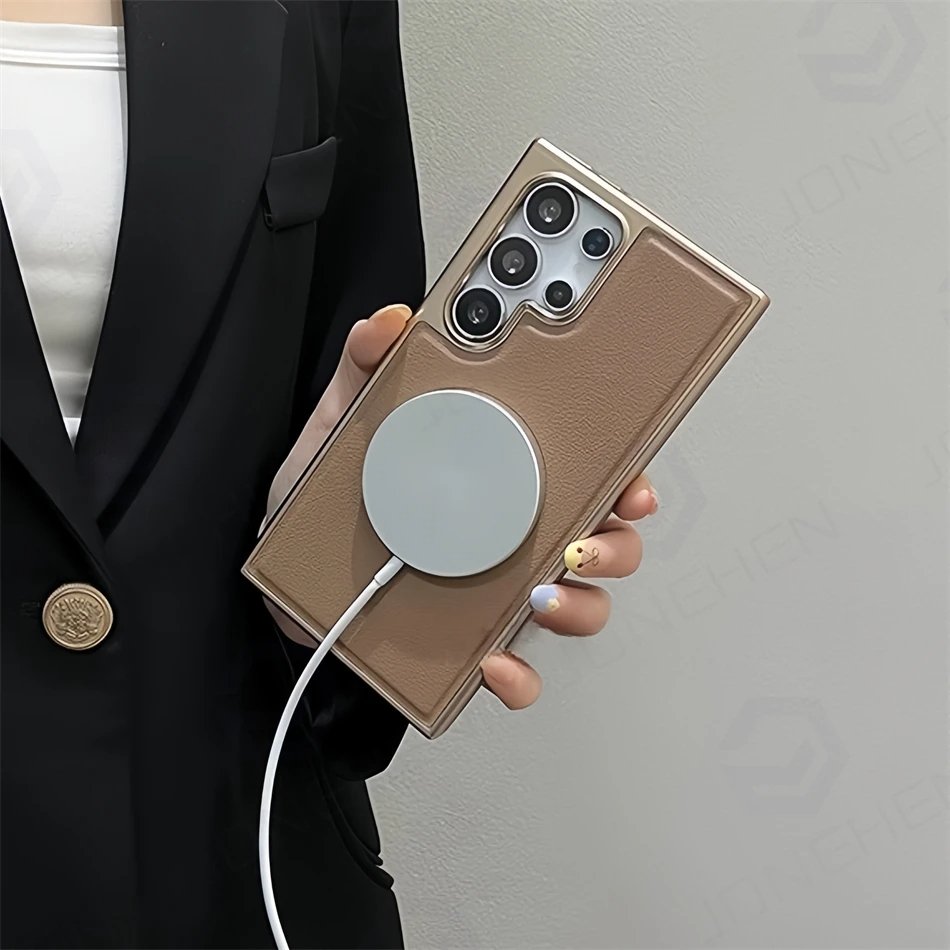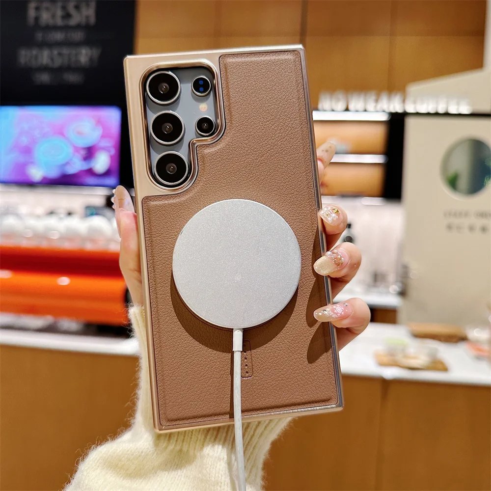 Luxury Premium Business PU Leather Electroplated Magsafe Wireless Charging  Phone Cover For Samsung Galaxy S Series