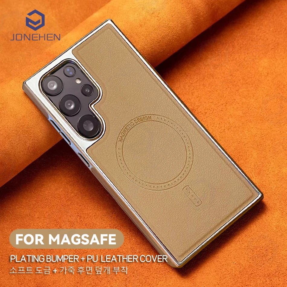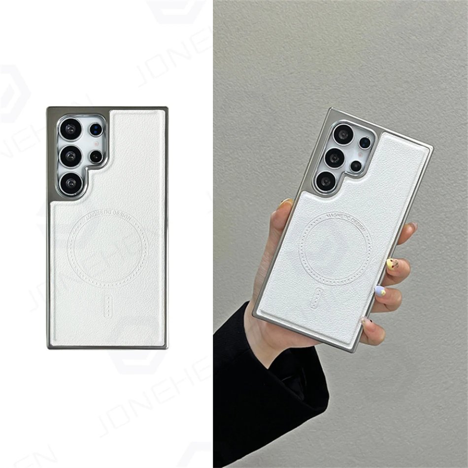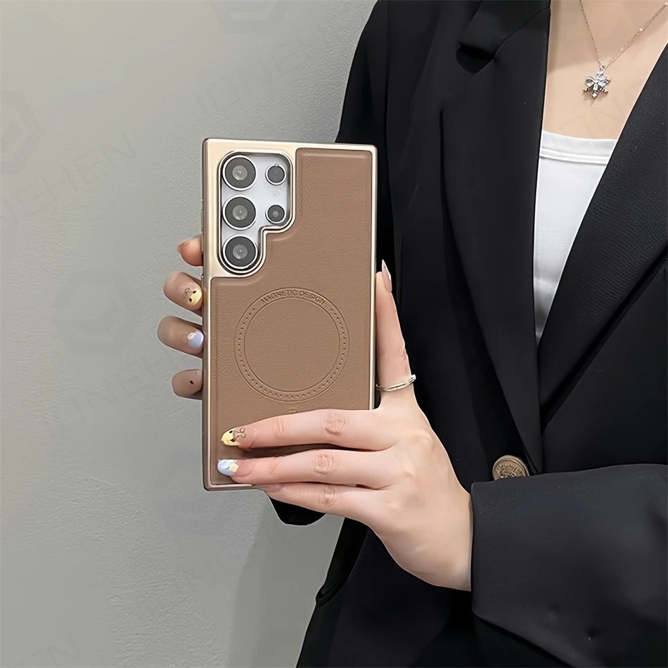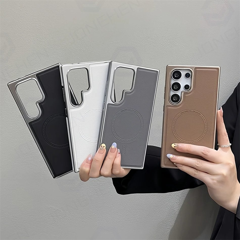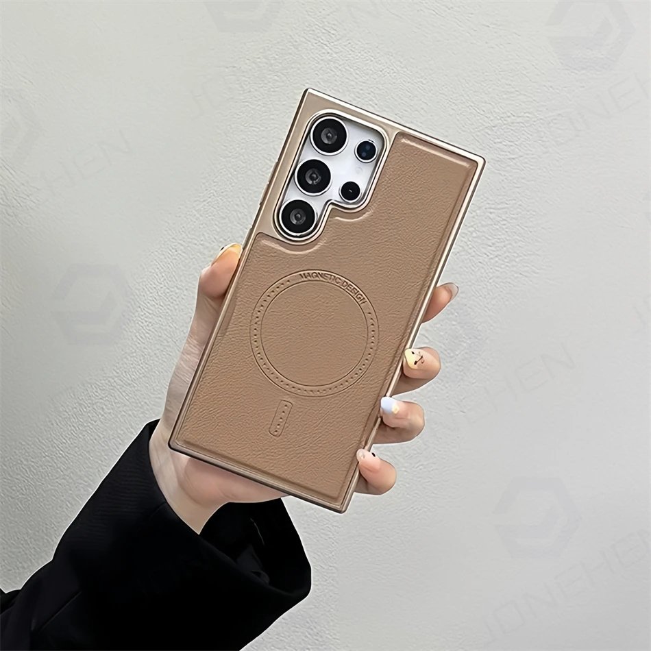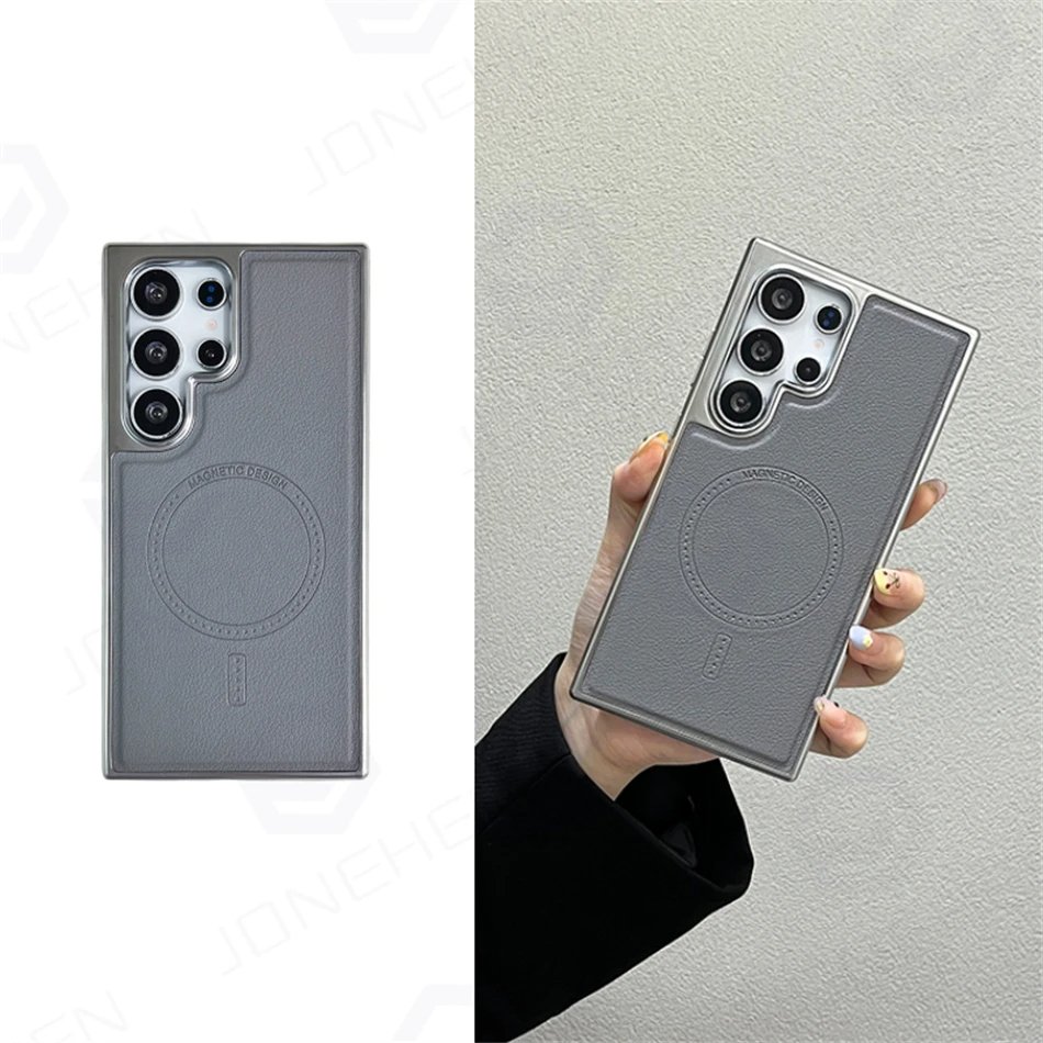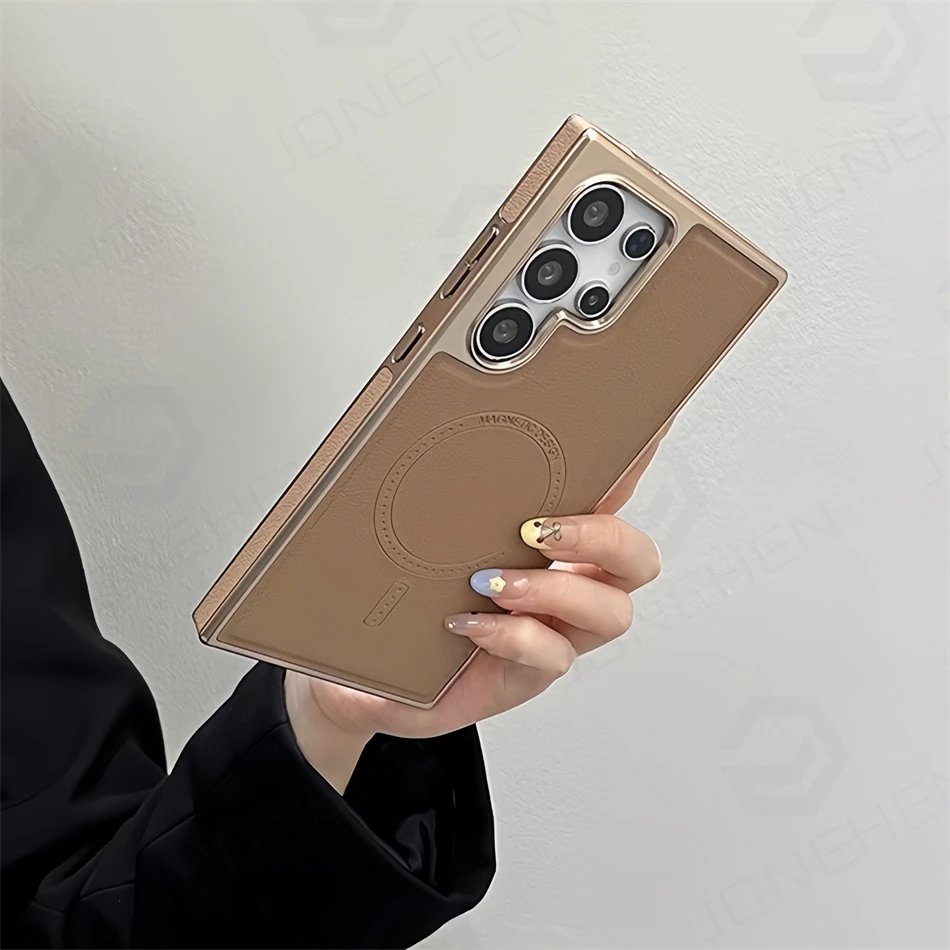 Luxury Premium Business PU Leather Electroplated Magsafe Wireless Charging  Phone Cover For Samsung Galaxy S Series