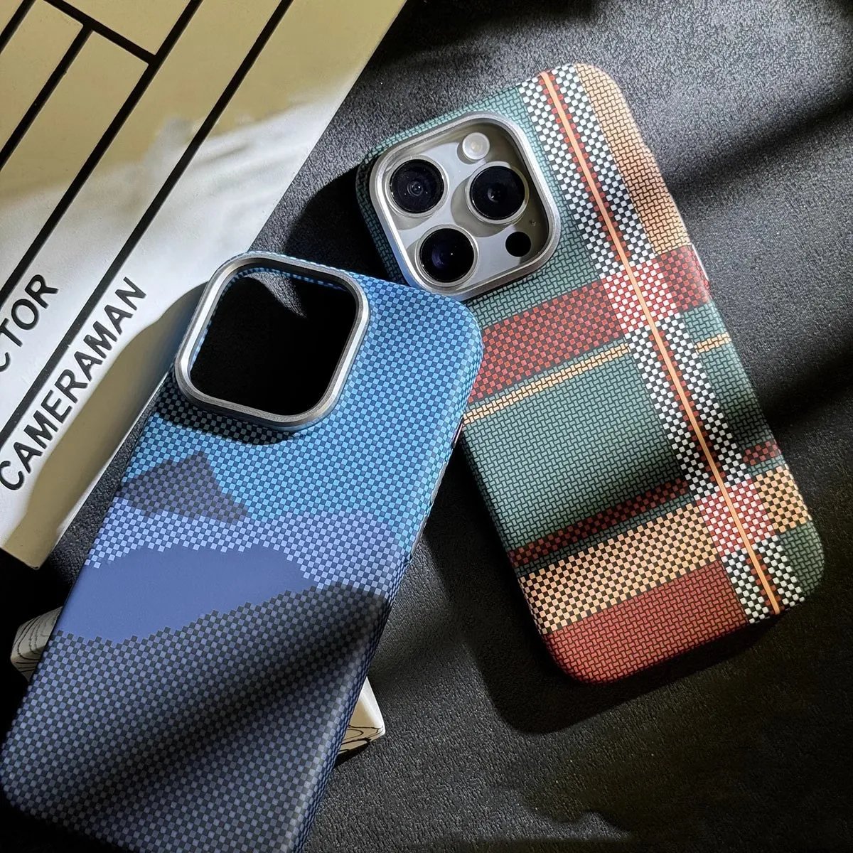 Luxury Premium Carbon Luminous Pixels Wireless Charging Hard PC Shockproof Case Cover For iPhone Series
