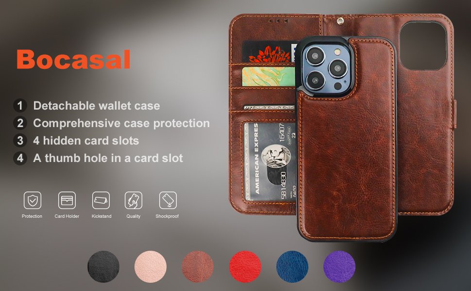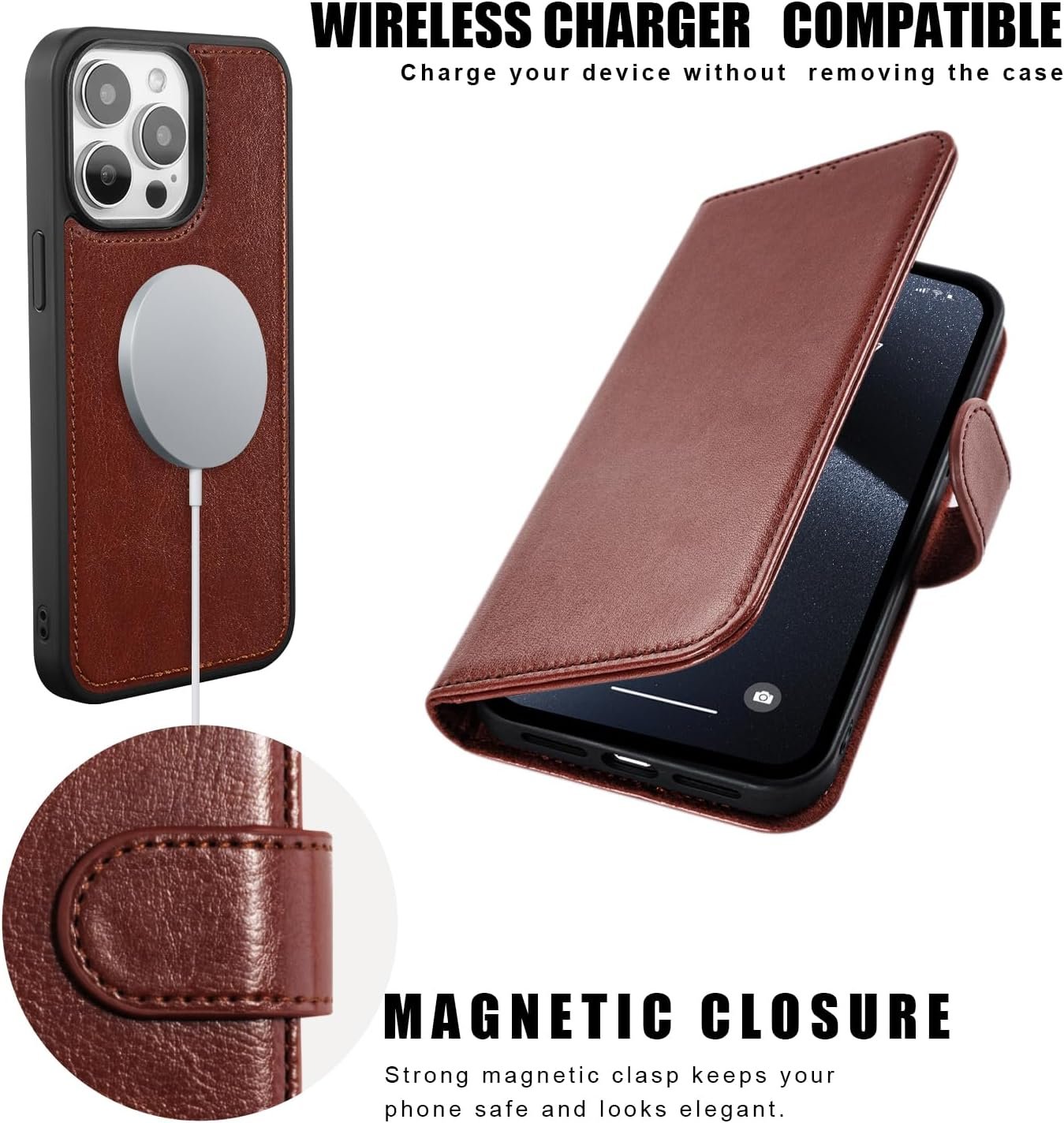 Luxury Premium Detachable PULOKA Wallet RFID PU Leather Magnetic Kickstand Removable Flip Case Cover For iPhone 13 Pro Max/14 Pro Max/15 Pro Max