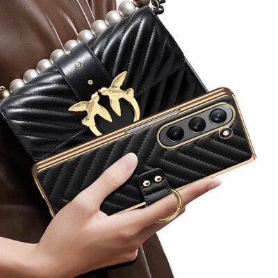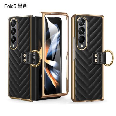 Luxury Premium Diamond air cushion Leather Ring Holder Lens Protection Shockproof Case  Cover For Samsung Galaxy Z Fold 4Luxury Premium Diamond air cushion Leather Ring Holder Lens Protection Shockproof Case Cover For Samsung Galaxy Z Fold 4