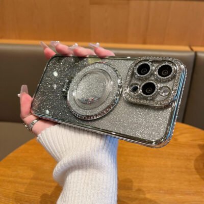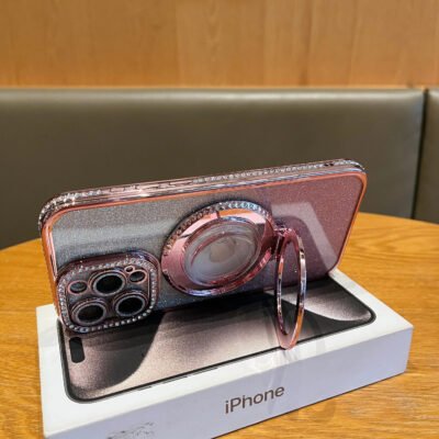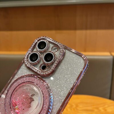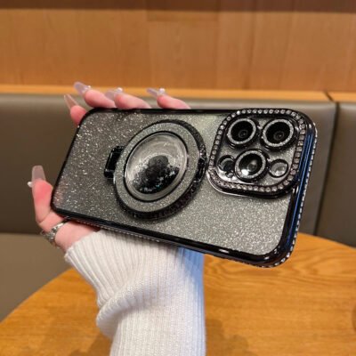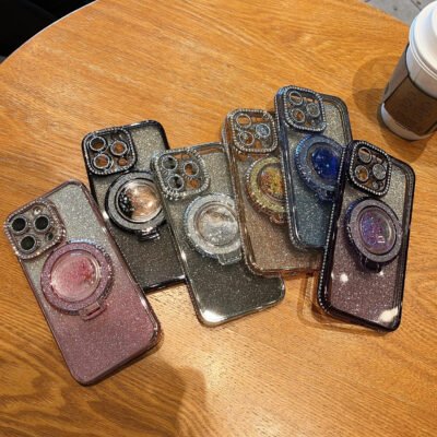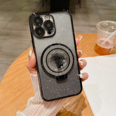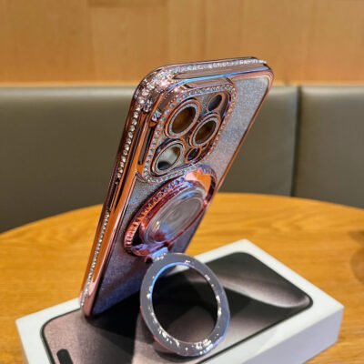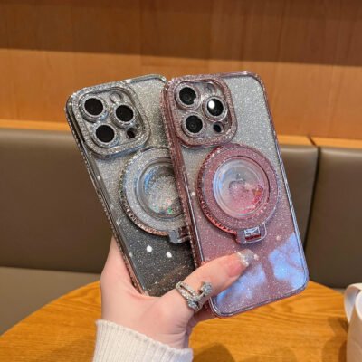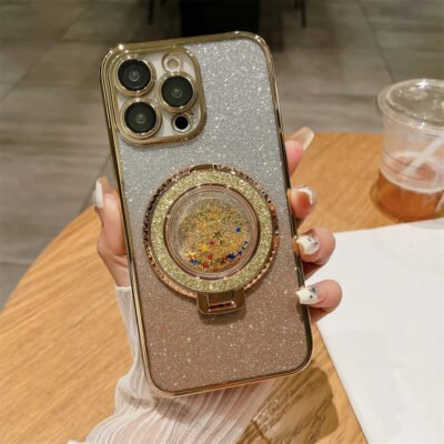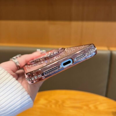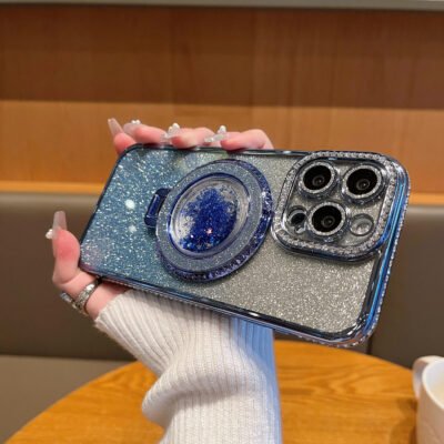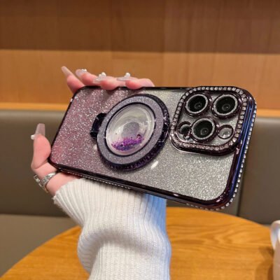 Luxury Premium Diamond-Encrusted Gradient Color Glitter Powder Quicksand Stand Phone Case For iPhone Series