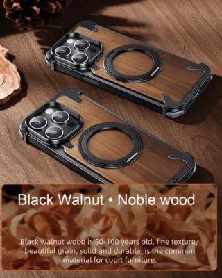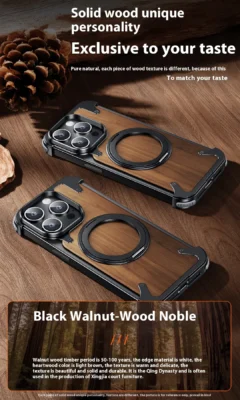 Luxury Premium Eary Natural Wood Frameless MagSafe Shockproof Case Cover For iPhone 15 Pro Max