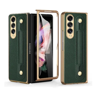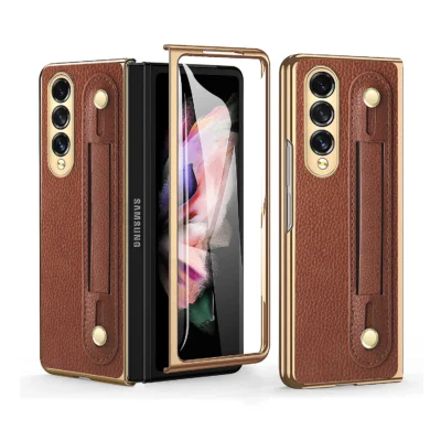 Luxury Premium Fashion Design Anti-Sweat Leather Wristband Folding Case Cover For Samsung Z Fold 3/Z Fold 4