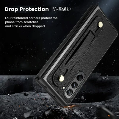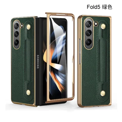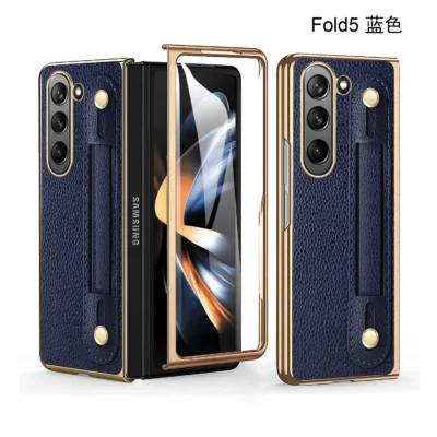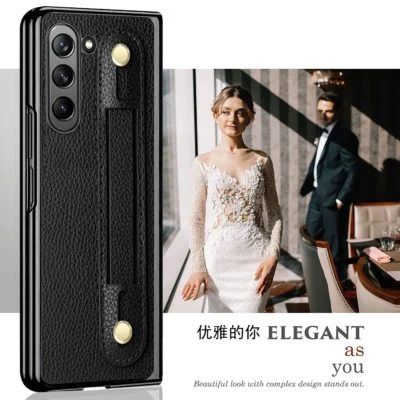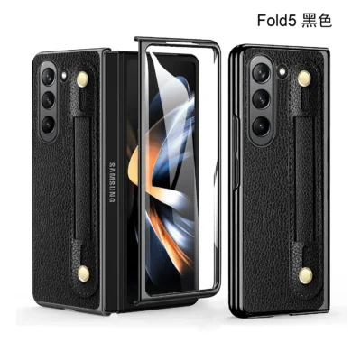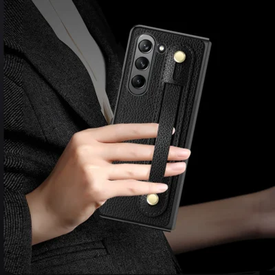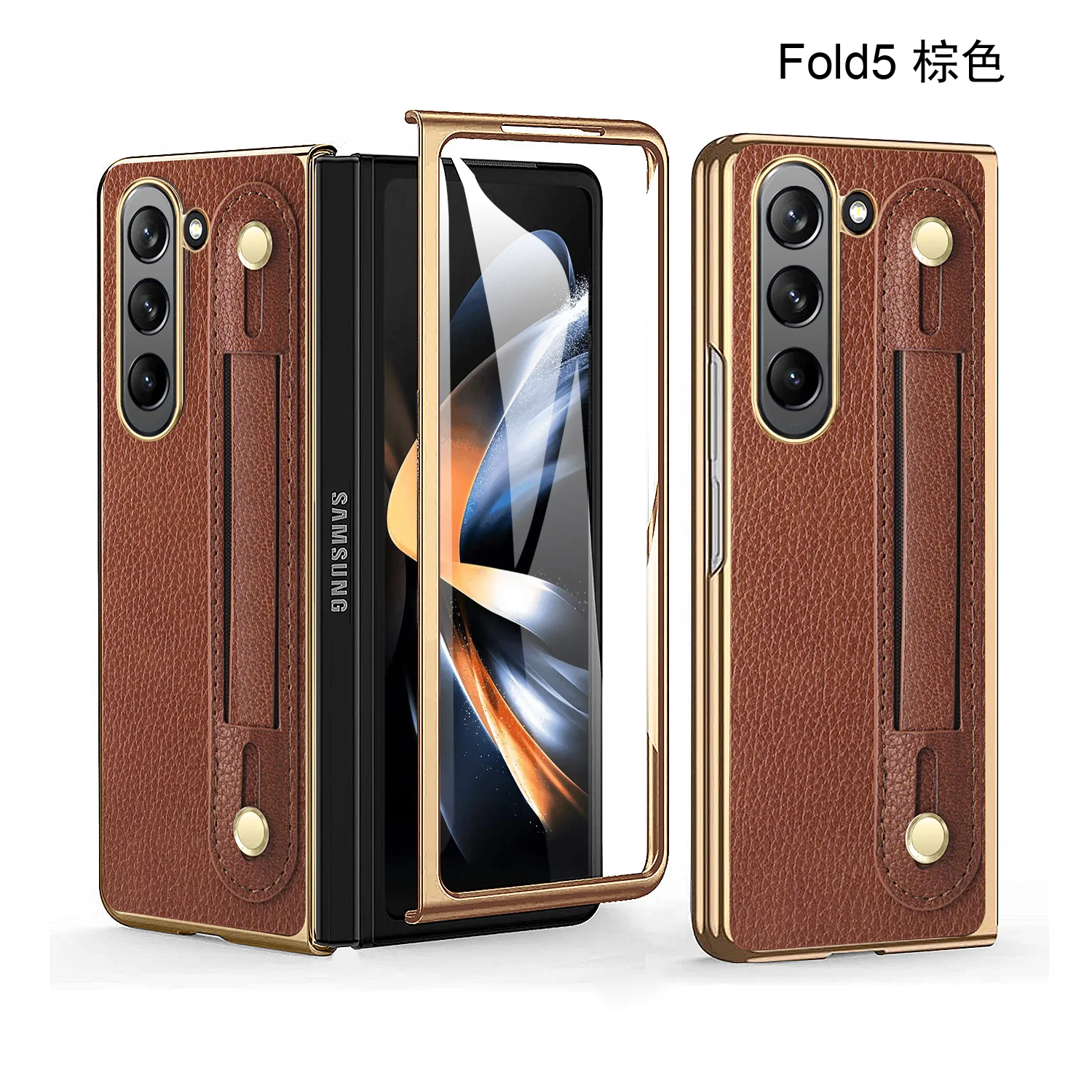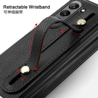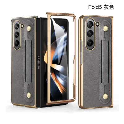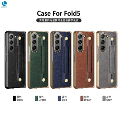 Luxury Premium Fashion Design Anti-Sweat Leather Wristband Folding Case Cover For Samsung Z Fold 5