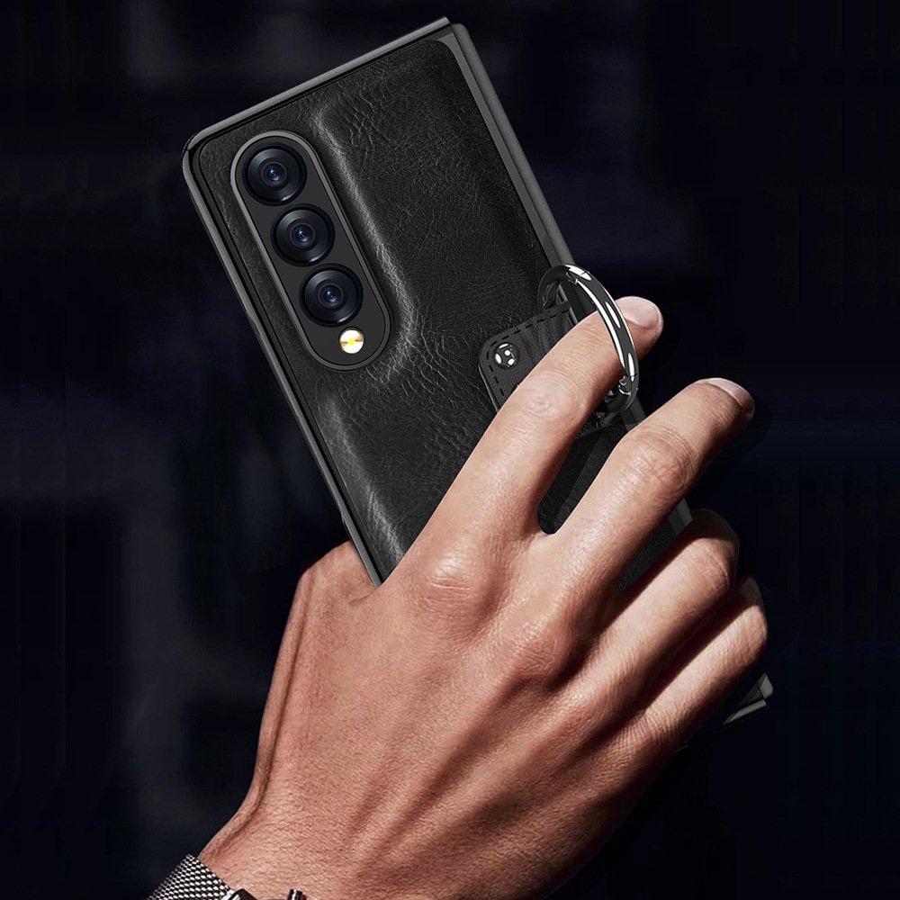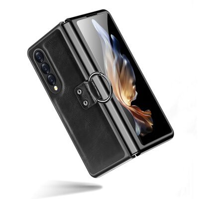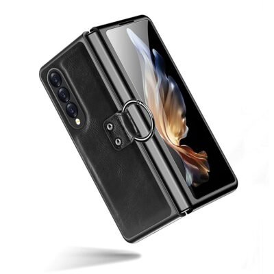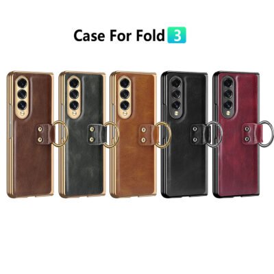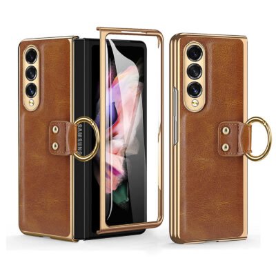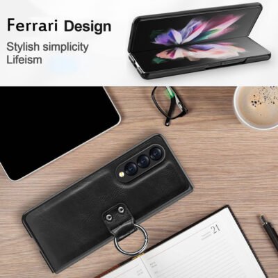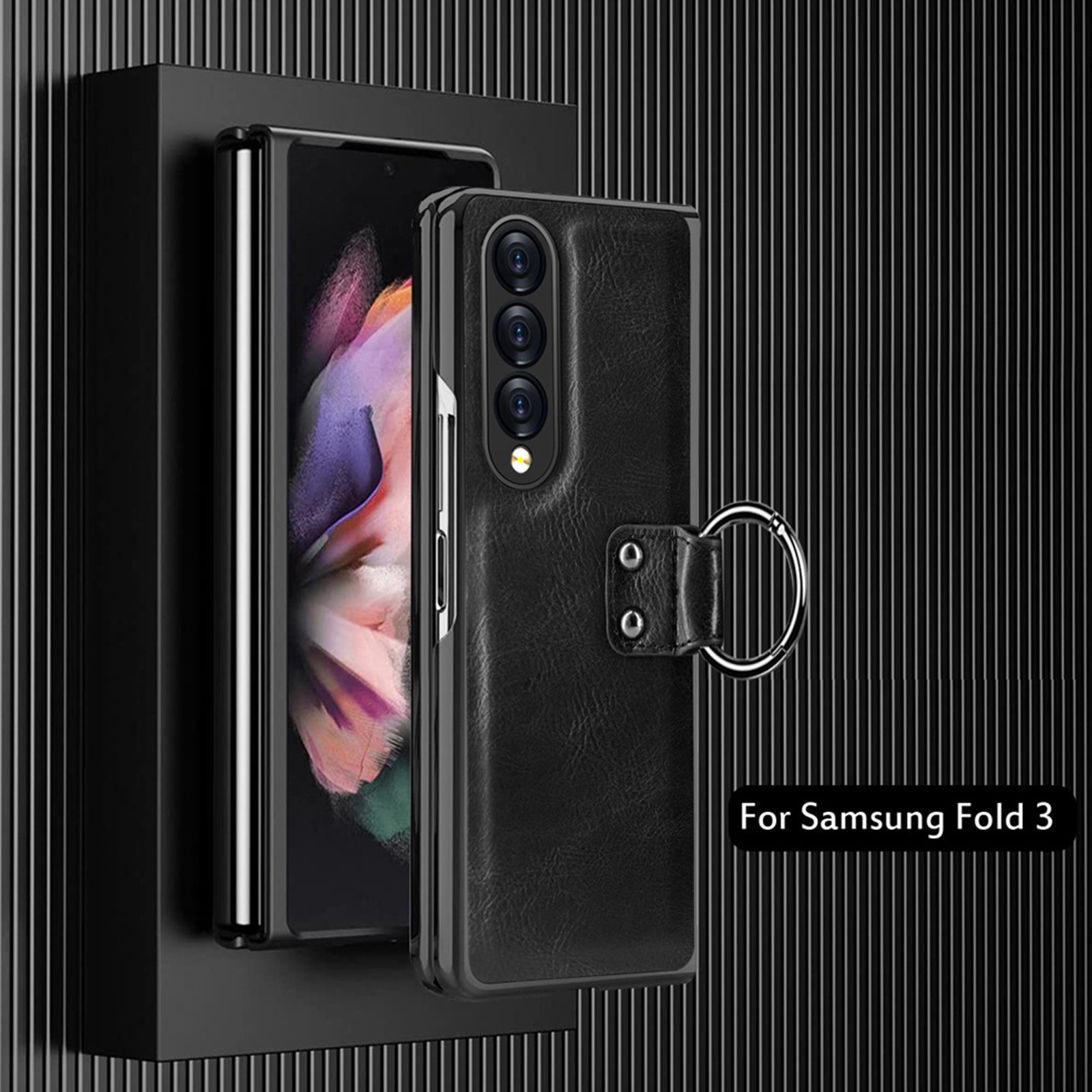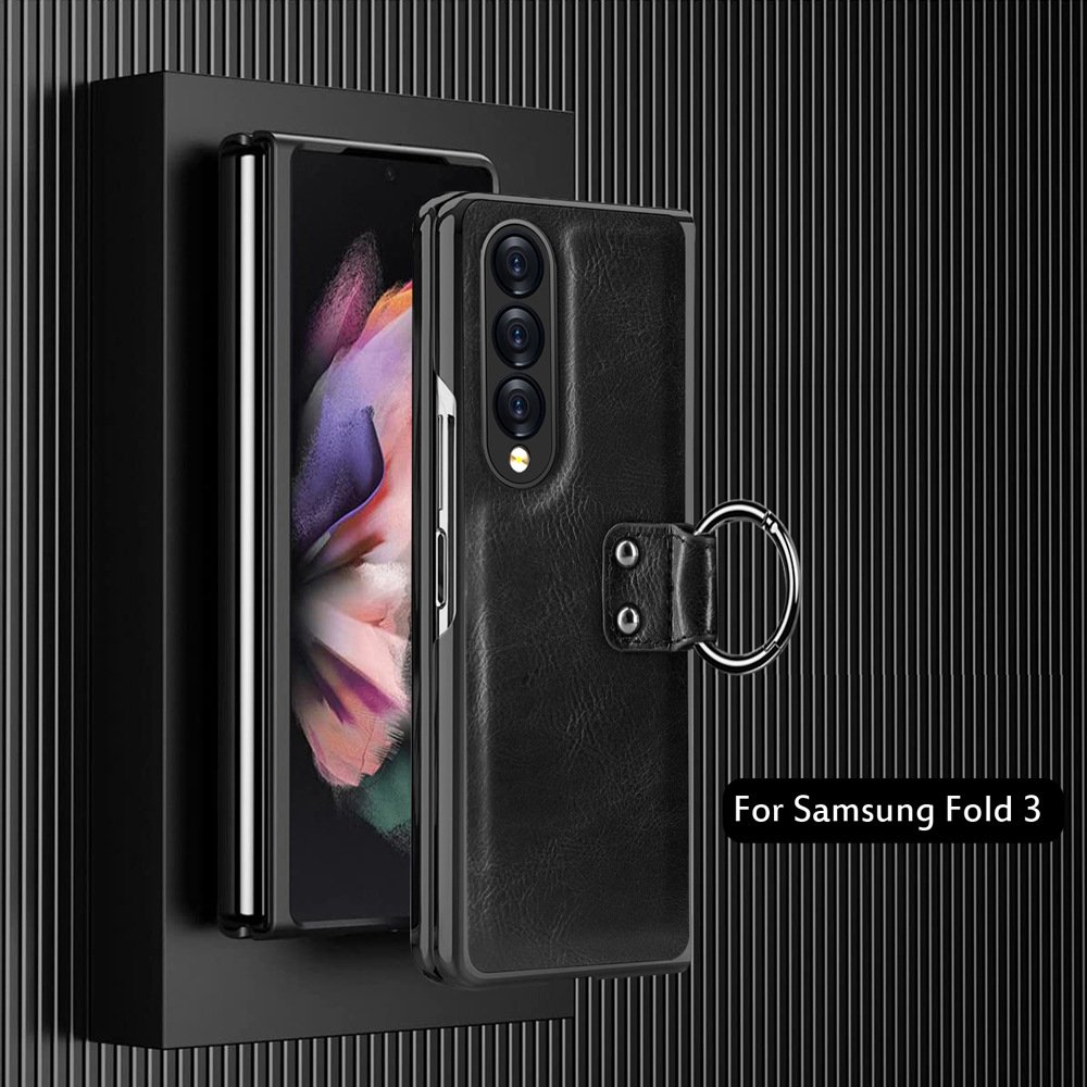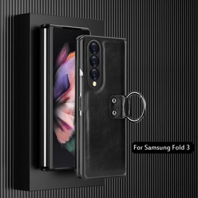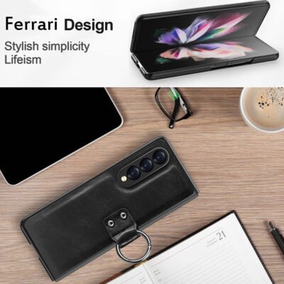 Luxury Premium Finger Horse Ring holder leather cover case for Samsung Galaxy Z Fold 5