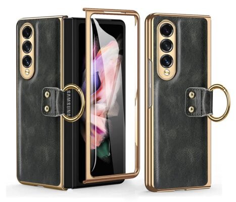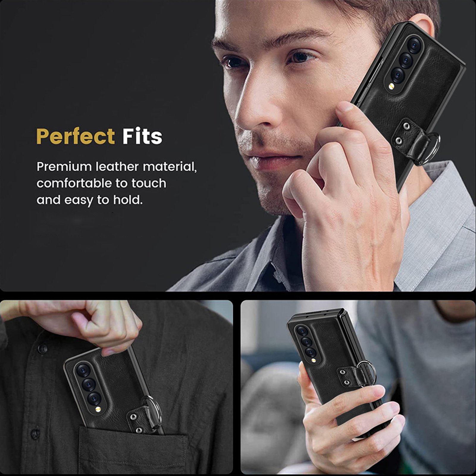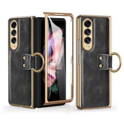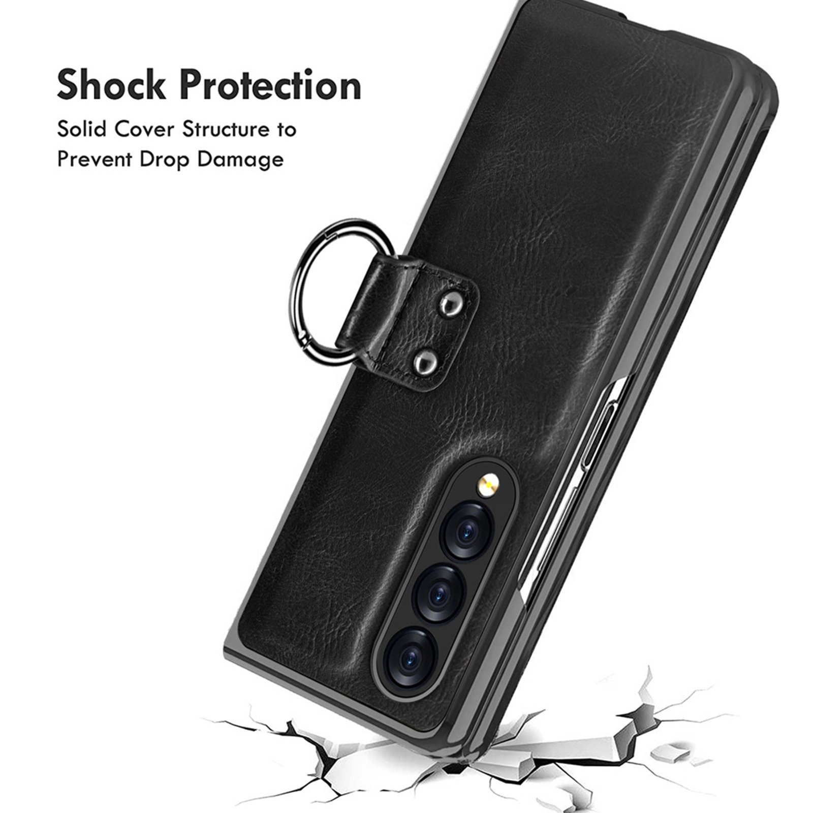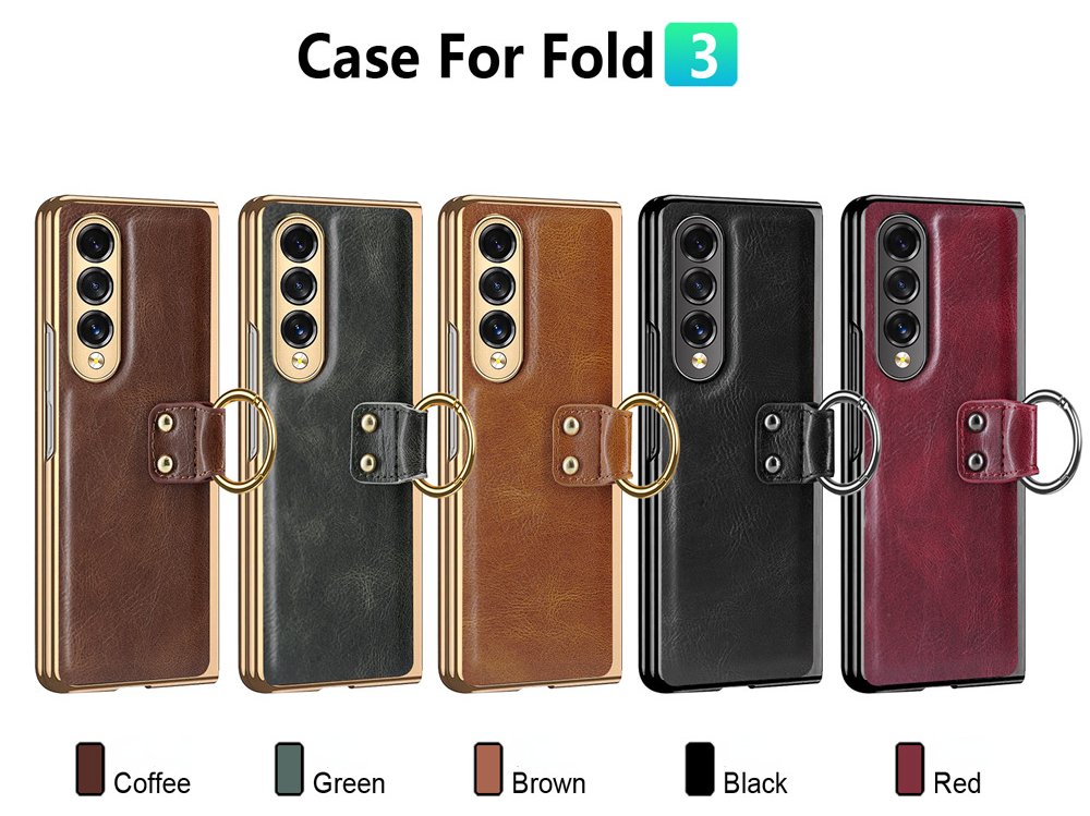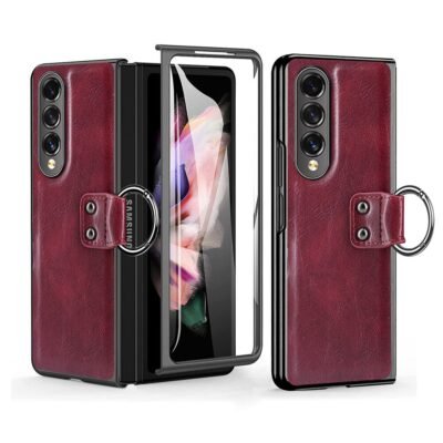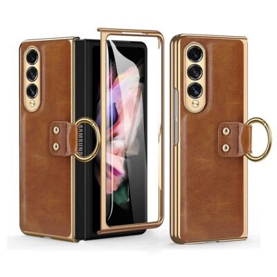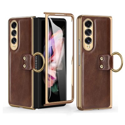 Luxury Premium Finger Horse Ring holder leather cover case for Samsung Galaxy Z Fold 5