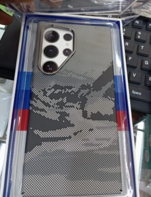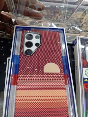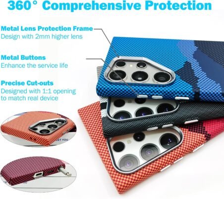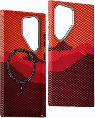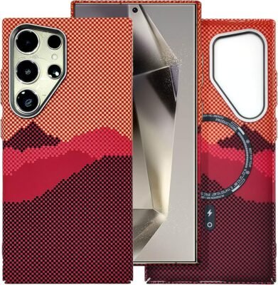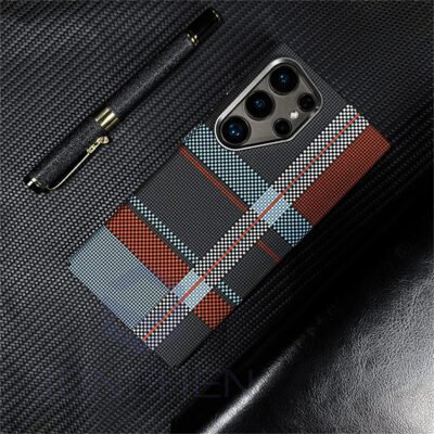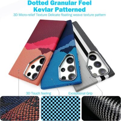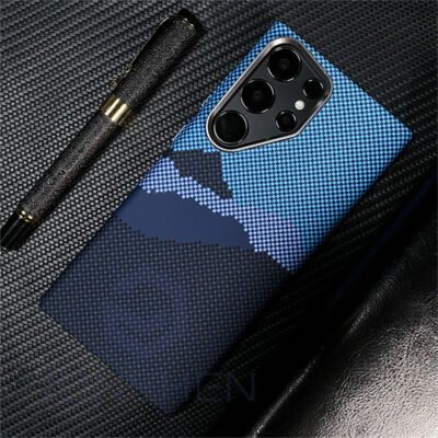 Luxury Premium Luminous Carbon Pixels Stand Holder Wireless Charging Hard PC Shockproof Case Cover For Samsung S23 Ultra/S24 Ultra