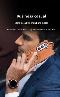 Luxury Premium PU Leather Folding Invisible Holder Magsafe Phone Case Cover for Samsung Galaxy Z Fold 5