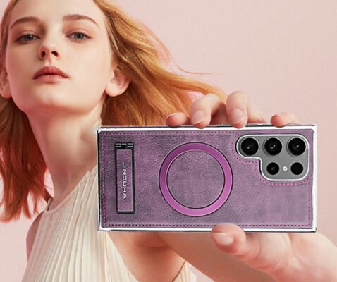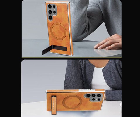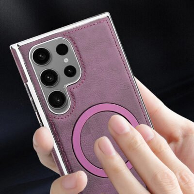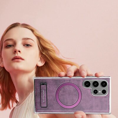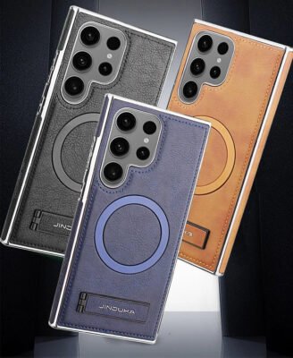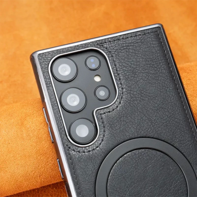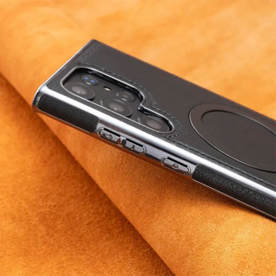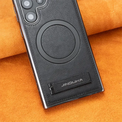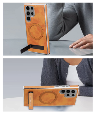 Luxury Premium PU Leather Invisible Stand Magnetic Wireless Charging Case for Samsung Galaxy S23/S24 Ultra