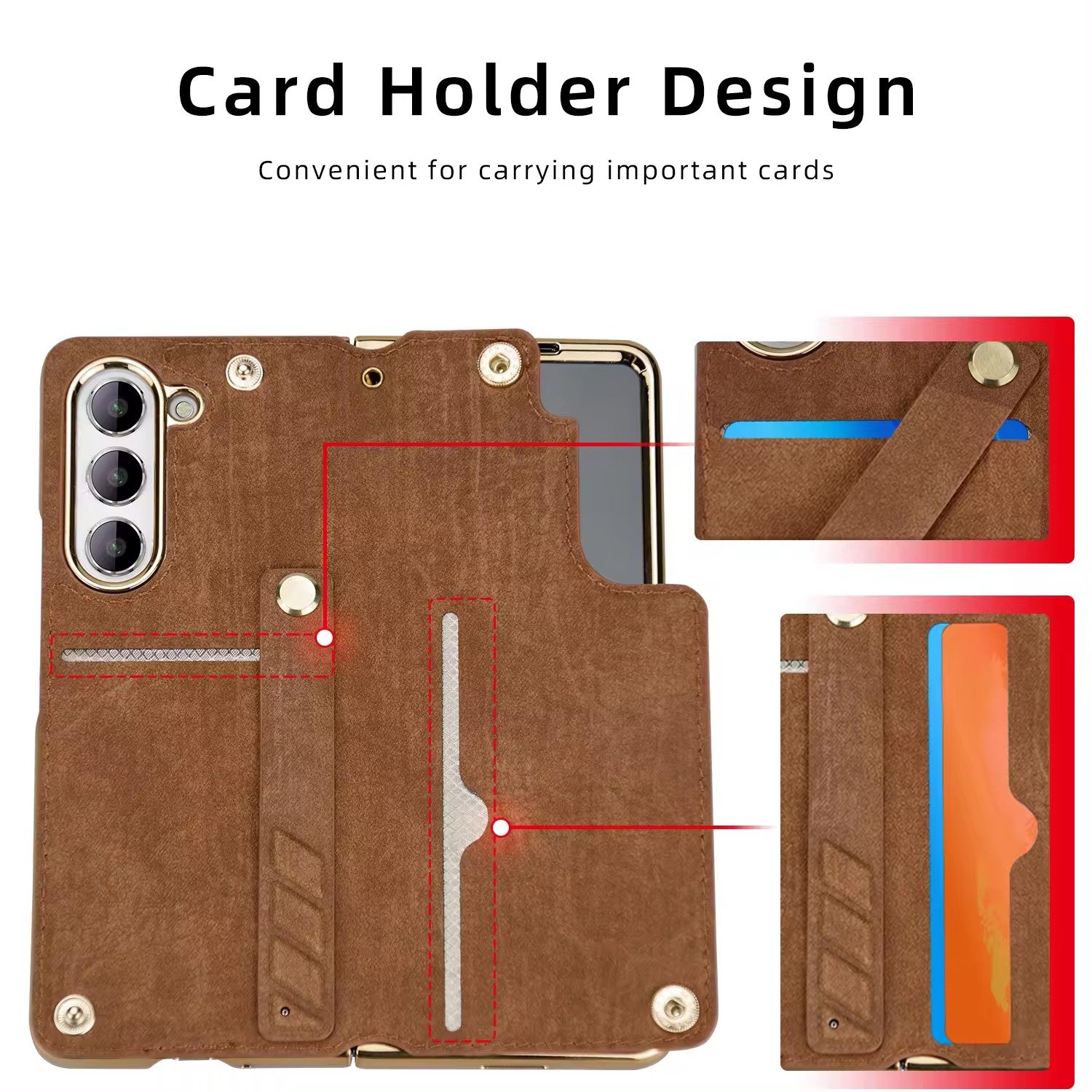 Luxury Premium Rugged Leather Wallet Card Slot Stand Phone with Pen Holder For Samsung Galaxy Z Fold 5