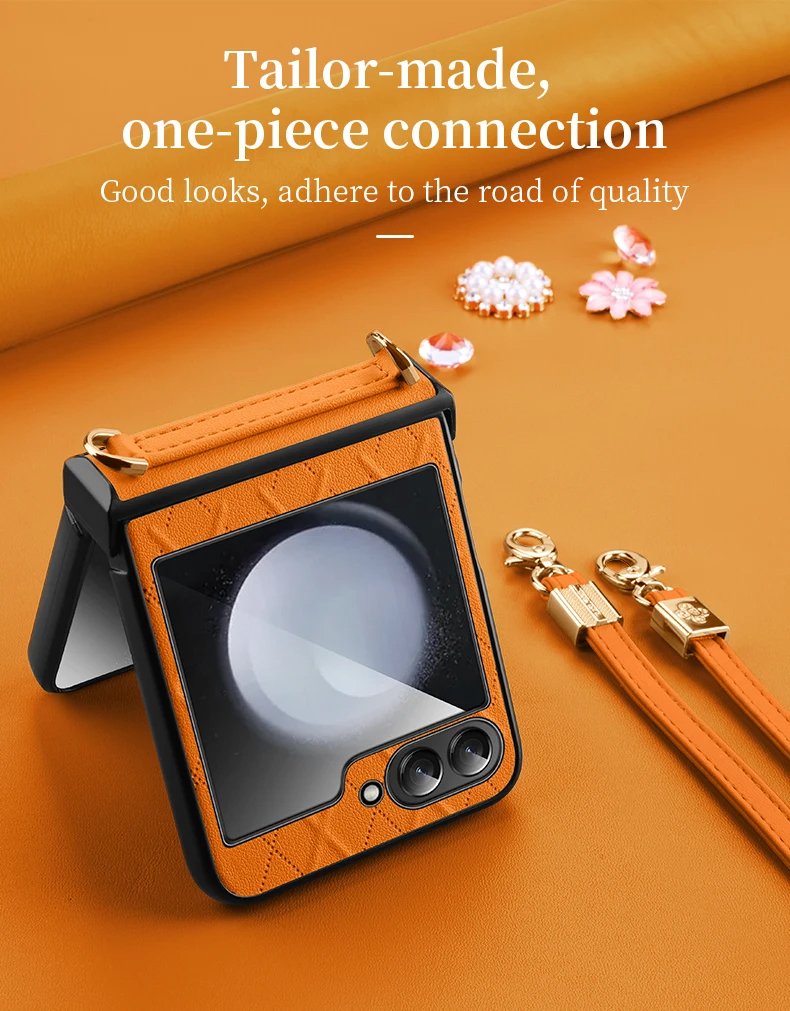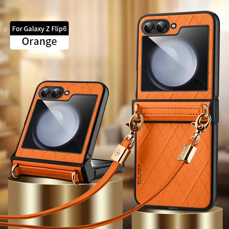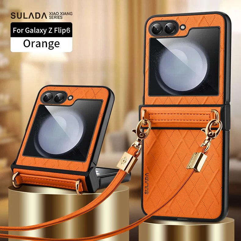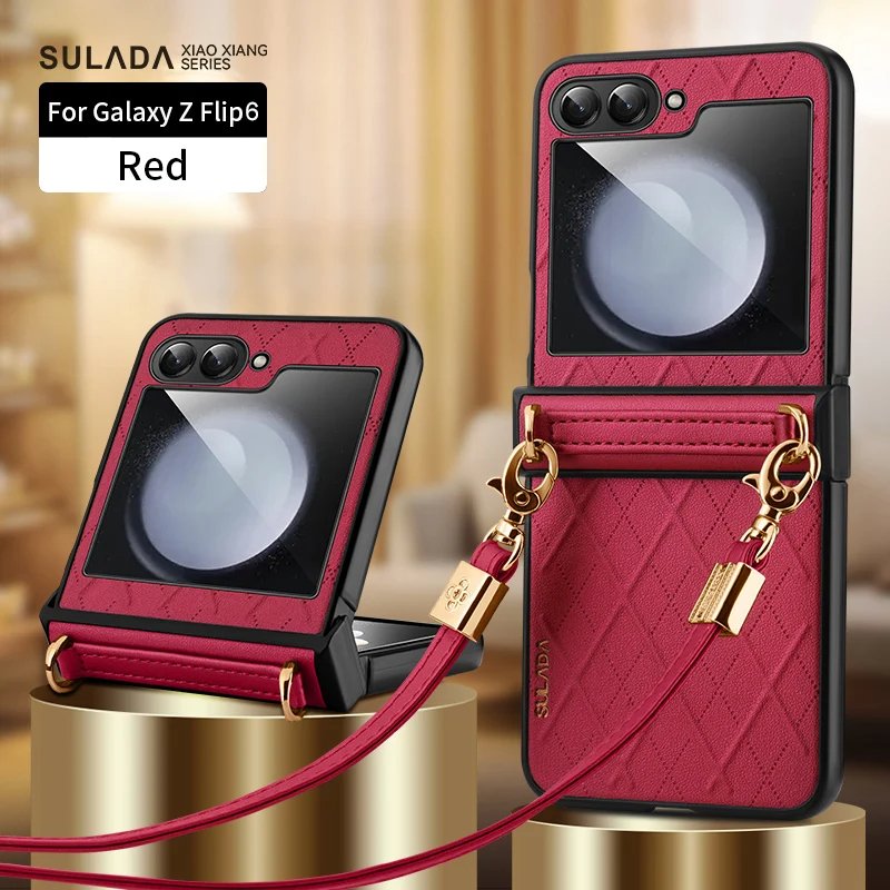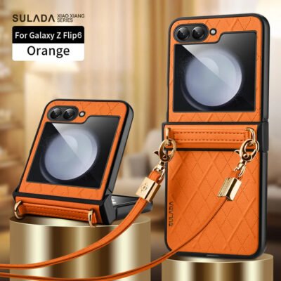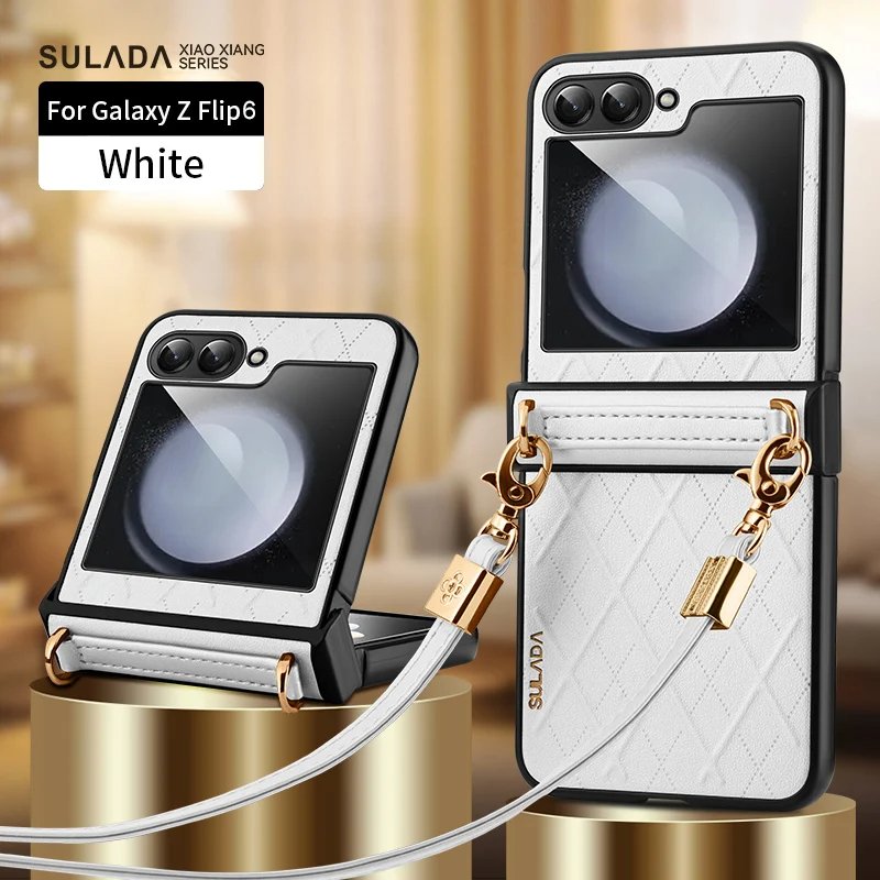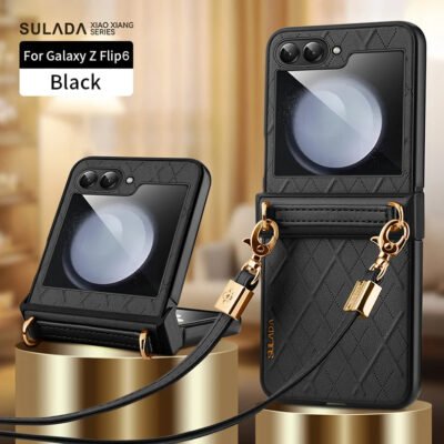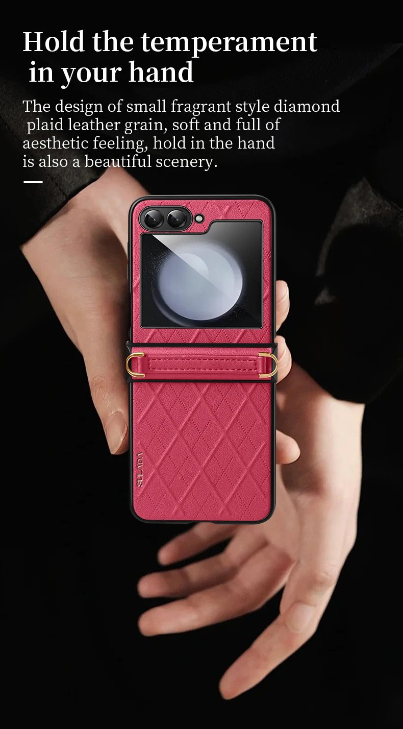 Luxury Premium SULADA Litchi Texture Leather + TPU Phone Case with Strap Case Cover For Z Flip 5/Z Flip 6