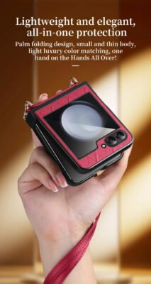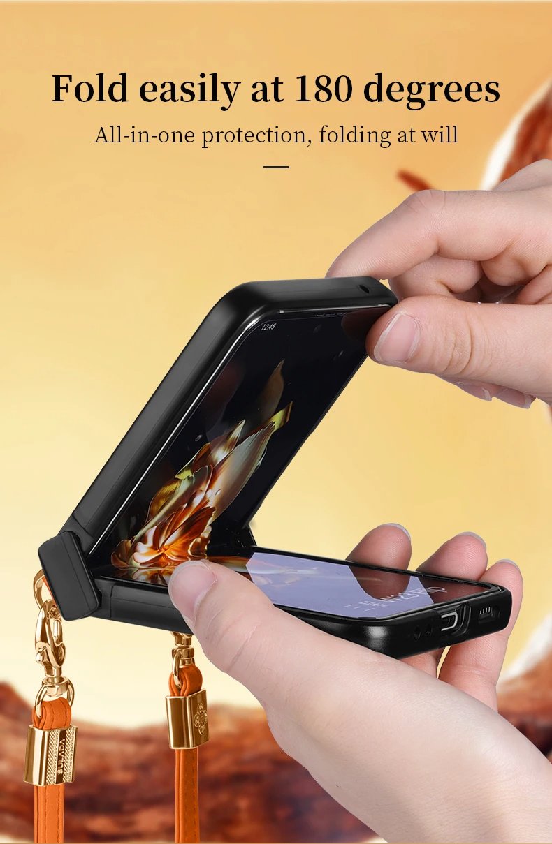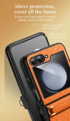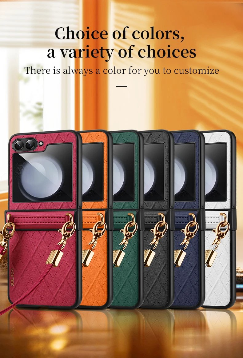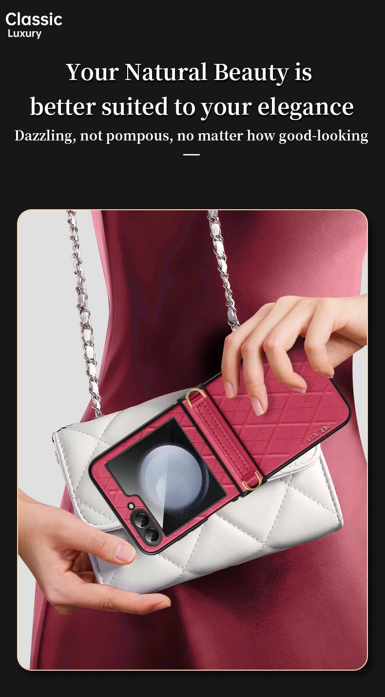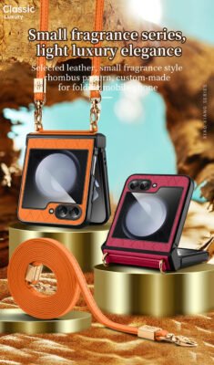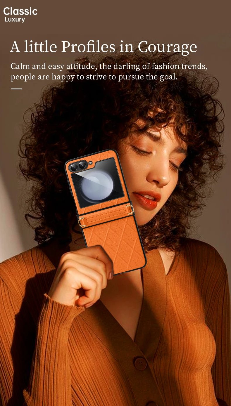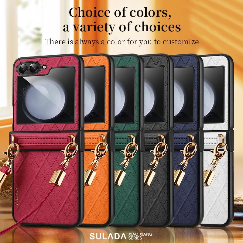 Luxury Premium SULADA Litchi Texture Leather + TPU Phone Case with Strap Case Cover For Z Flip 5/Z Flip 6