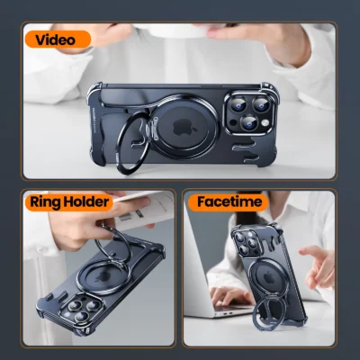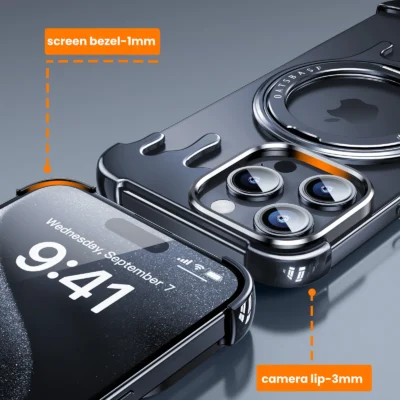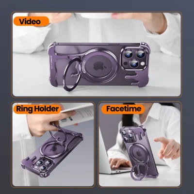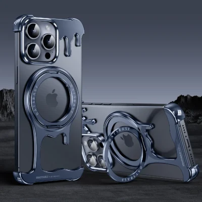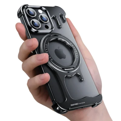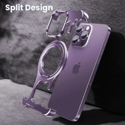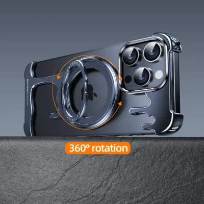 Luxury Premium Wireless Frameless with Magsafe Kickstand 360° Rotatable Magnetic Stand Case Cover For iPhone 14 Pro Max
