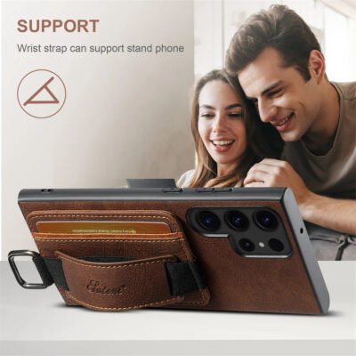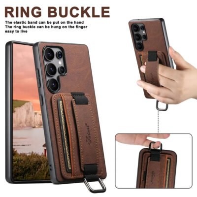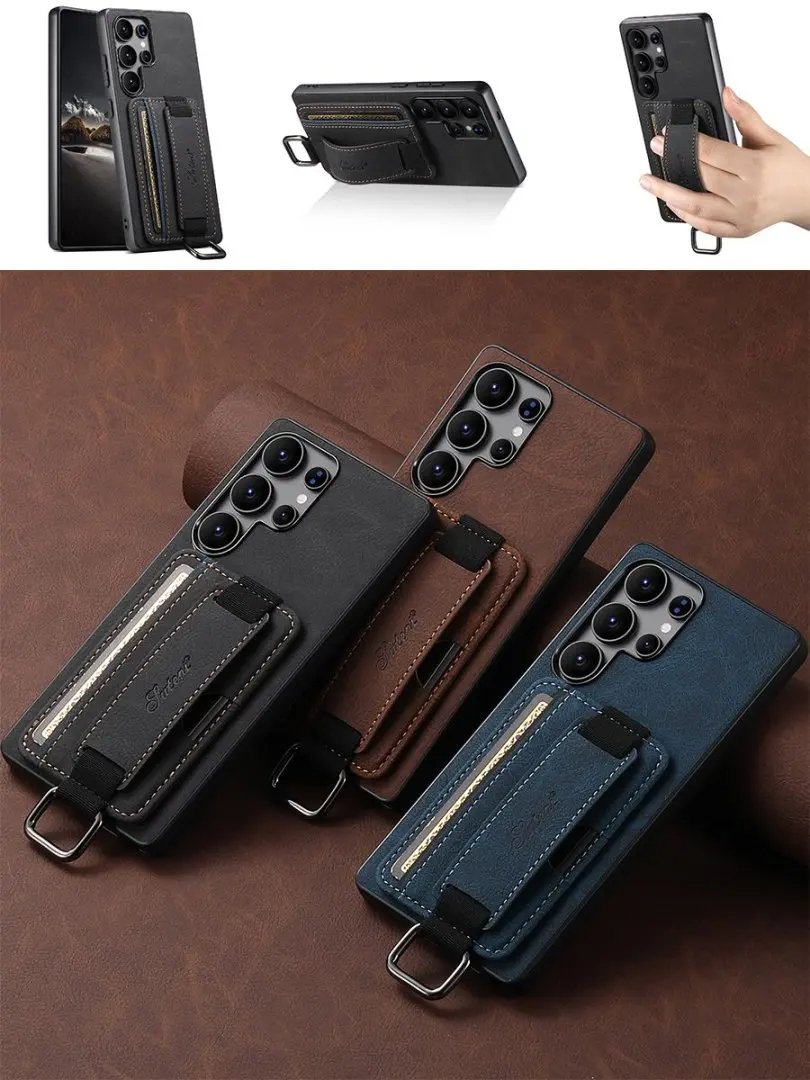 Luxury Premium Wrist Strap Protective PU Leather Card Slot case Cover For Samsung Galaxy S22 Ultra/S24 Ultra/S25 Ultra
