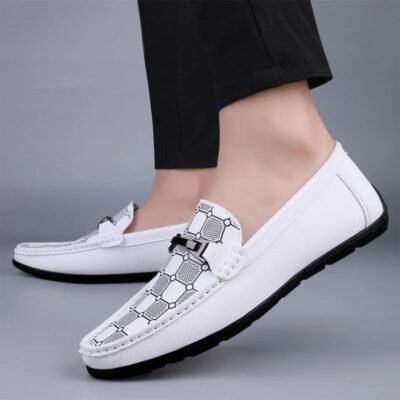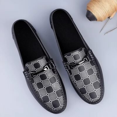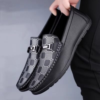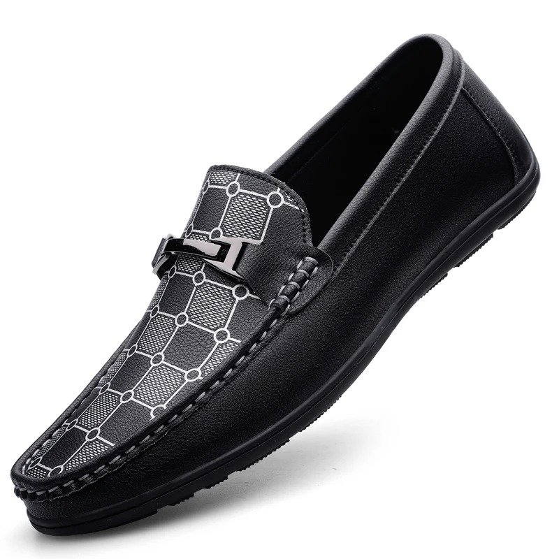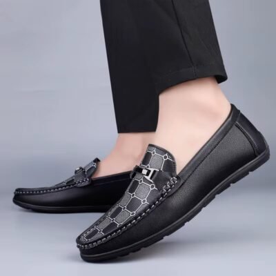 Mens Loafers 2025 Trend Anti Slip Comfortable Shoes Men PU Leather Casual Slip On Lightweight Walking Shoes Black Flat
