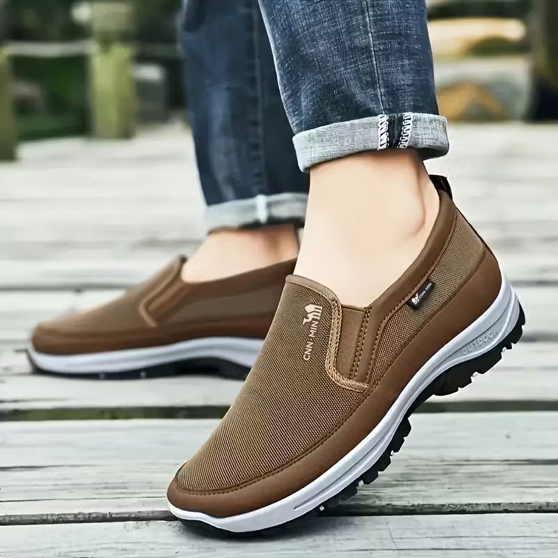 Men’S Comfortable Non-Slip Loafers: Solid Color Breathable Knit Slip-On Sneakers, Thick Sole Lightweight Casual Shoes Suitable for Outdoor Activities in All Four Seasons