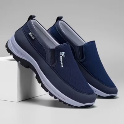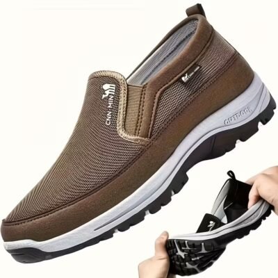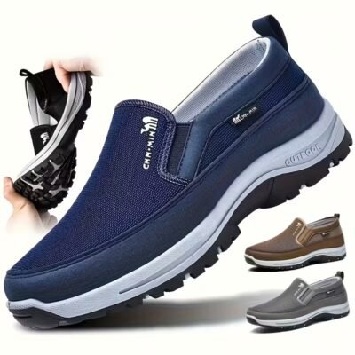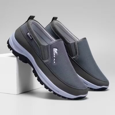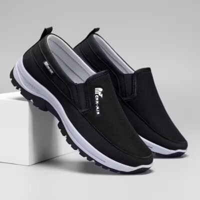Men’S Comfortable Non-Slip Loafers: Solid Color Breathable Knit Slip-On Sneakers, Thick Sole Lightweight Casual Shoes Suitable for Outdoor Activities in All Four Seasons