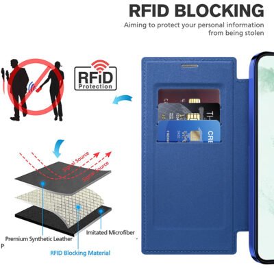 (Card Storage) This notebook style case is made for Samsung Galaxy S23/S22 Ultra with 3 card slots and a free pocket on the inside