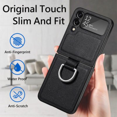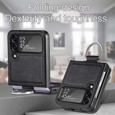 - This Samsung Galaxy z flip 3/4 phone case is made of PU leather and hard PC, So it can provide maximum protection for Galaxy Z Flip 3.On the back is a ring and strap to keep the phone securely on your hand; It adds style to the phone as well as helping you keep a good grip.