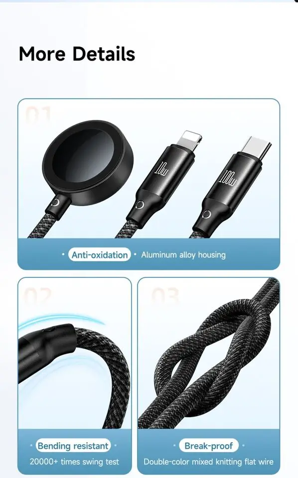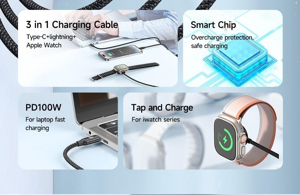 Vidvie Multifunctional Data Cable Type-c To Cliwatch 100w Fast Charging Cable